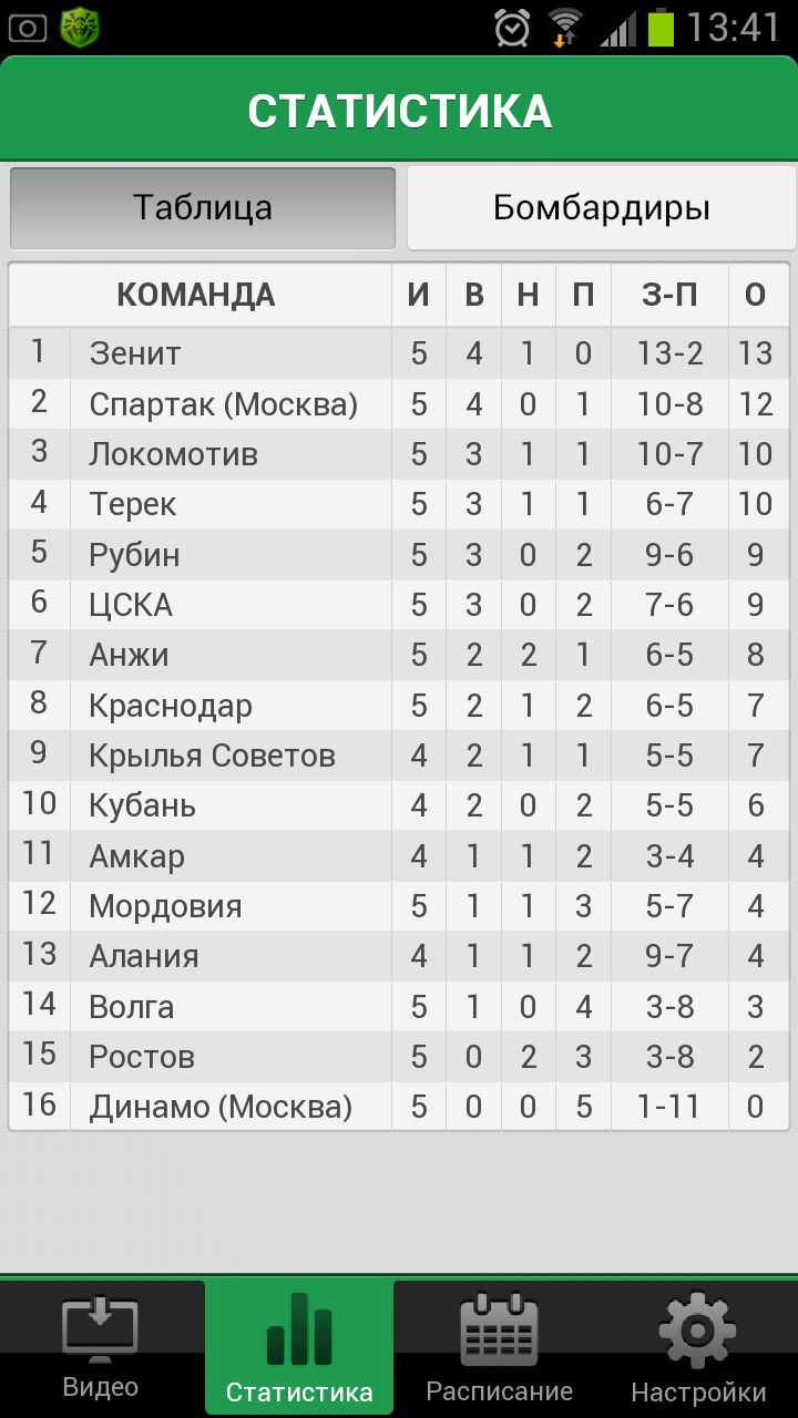 — Таблица Чемпионата