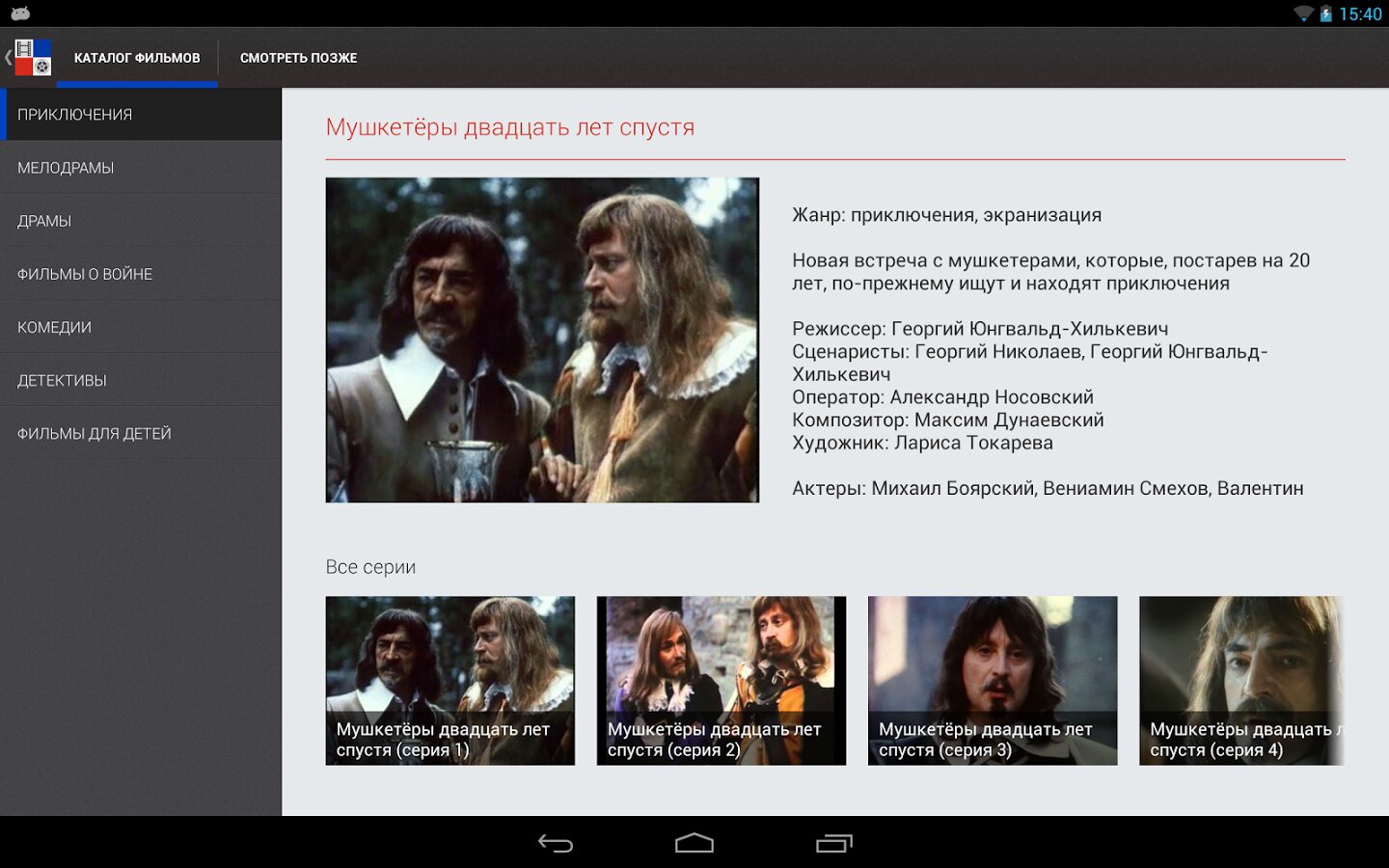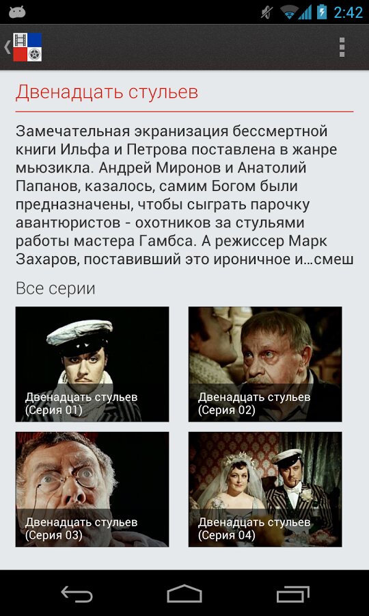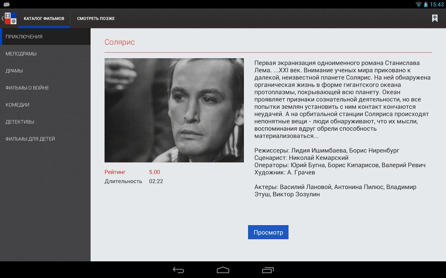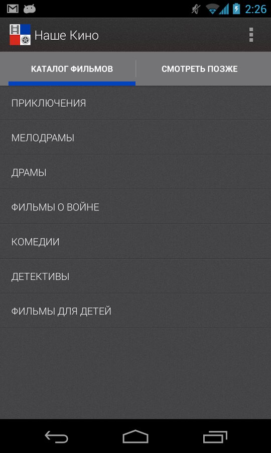 Наше Кино — большая коллекция культовых советских кинофильмов. Приложение предоставляет удобную навигацию по жанрам, а также возможность выбрать фильм для отложенного просмотра. Сервис абсолютно бесплатен, а огромный выбор кинолент порадует зрителя любого поколения.