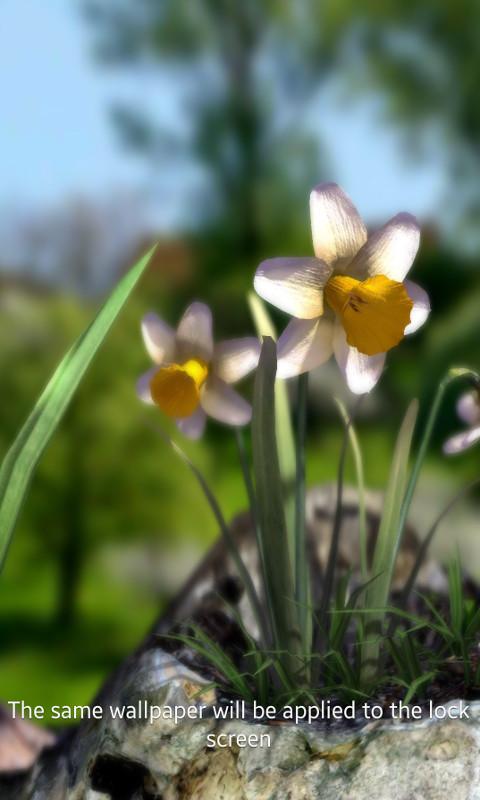 Nature Live: Spring Flowers 3D — поразительная трёхмерная сцена с весенними цветами: подснежниками, нарциссами и крокусами. Выбирайте любое из 9 фоновых изображений с весенними пейзажами. Объединяйте их с 6 вариантами сцен переднего плана. Обои имеют высокое разрешение, поэтому будут одинаково хорошо выглядеть на всех типах гаджетов.