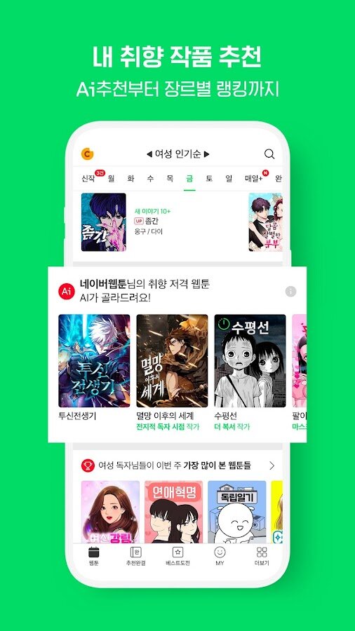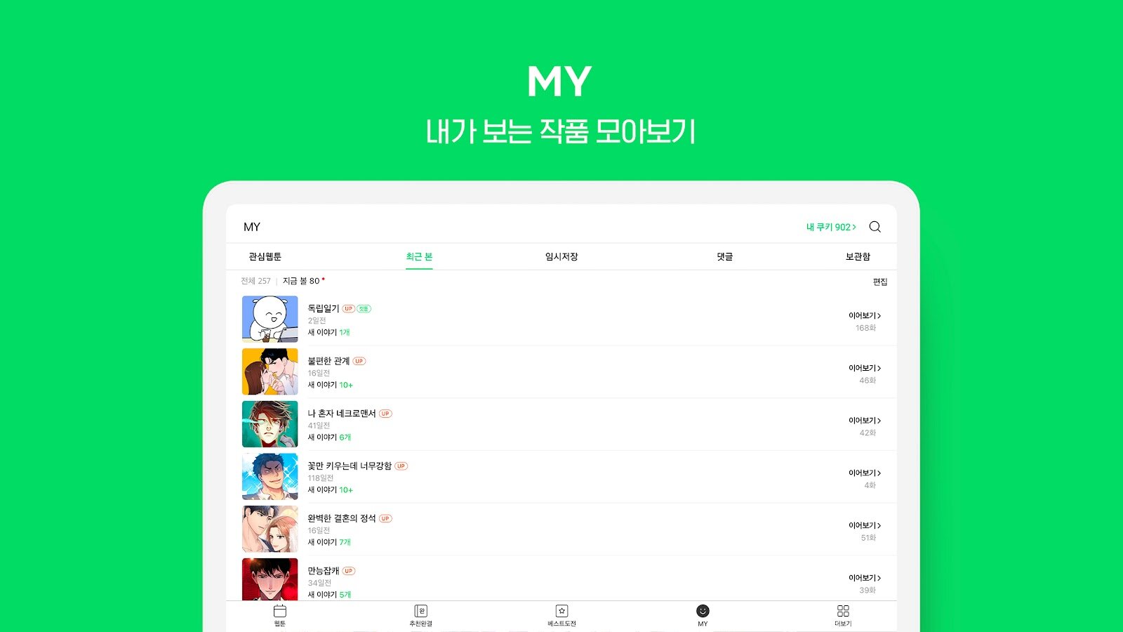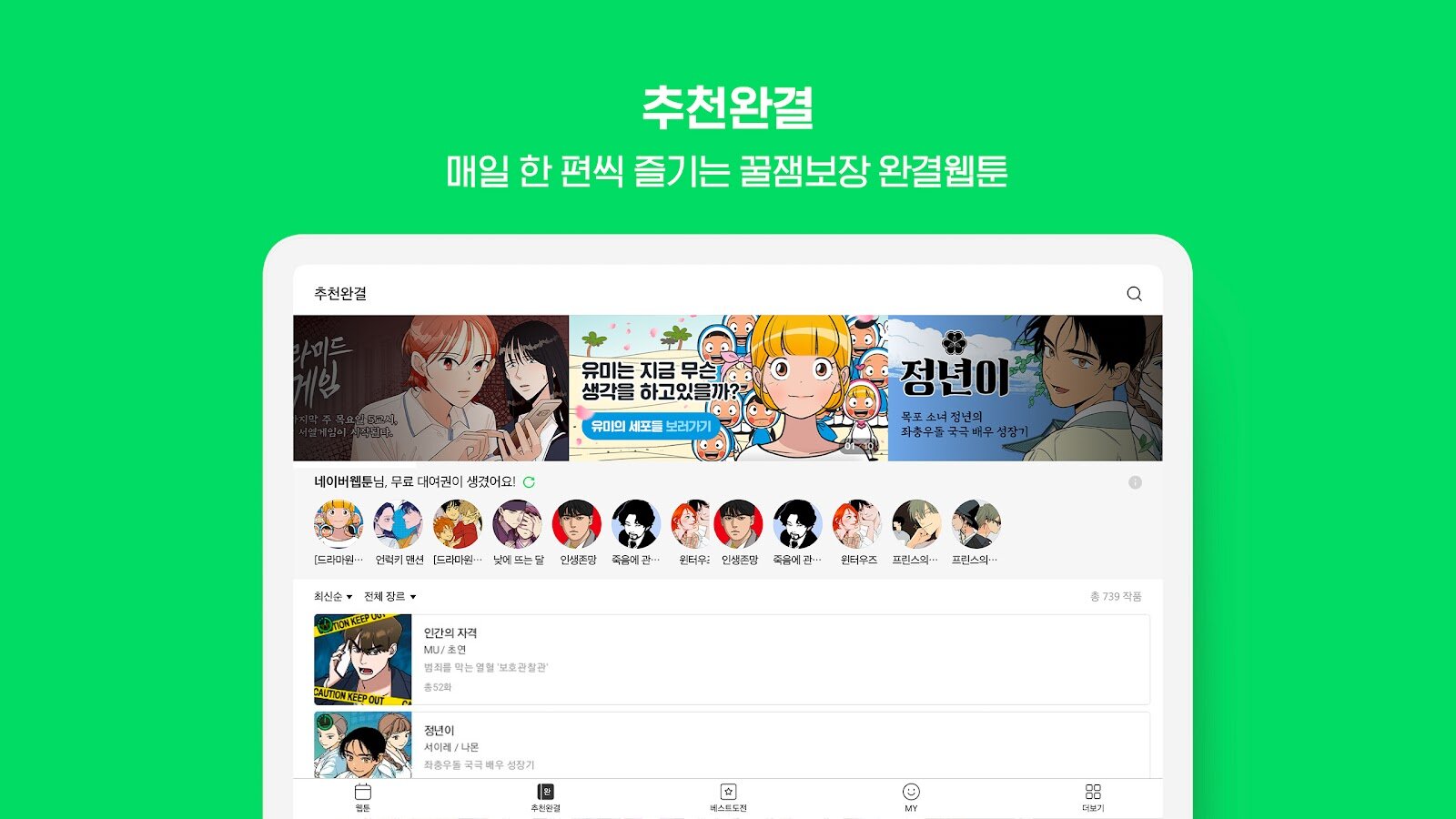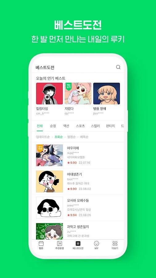 Проверяйте новые веб-мультфильмы каждый день на NAVER Webtoons! Все веб-мультфильмы отсортированы по популярности, количеству просмотров или обновлению, поэтому вы можете легко найти тот, который ищете.