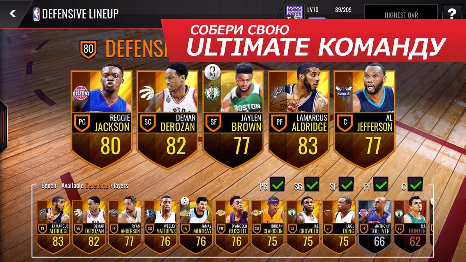 - Управляй ею, улучшай состав, забрасывай мячи один за другим и повышай рейтинг. Преврати любимый клуб в баскетбольную команду из суперзвезд NBA прошлого и настоящего. Рви пакеты, играй на аукционе и создавай сильнейший состав.