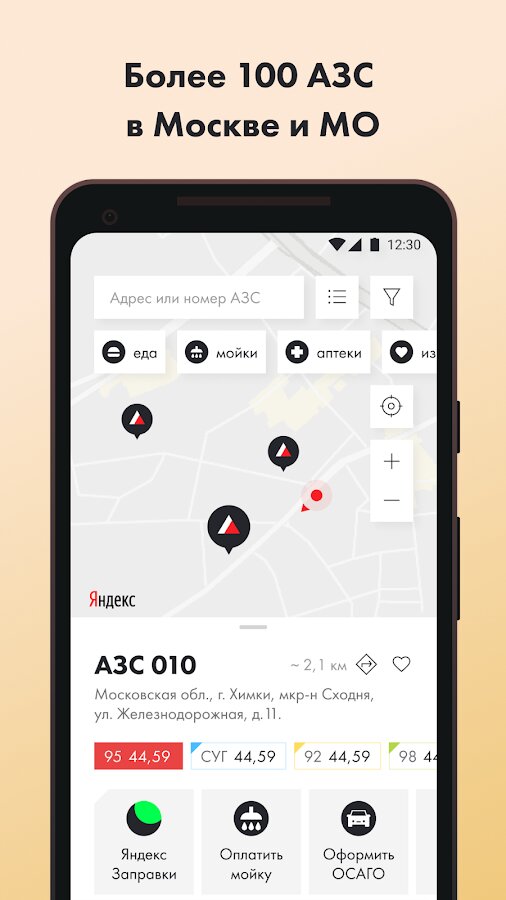 - узнавать о видах и стоимости топлива, а также о сервисах на каждой АЗС;