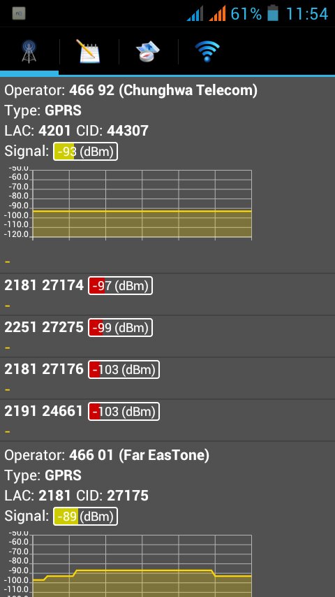 Netmonitor — приложение для мониторинга сети мобильного оператора GSM. Содержит информацию о текущей базовой станции, а также о ближайших.