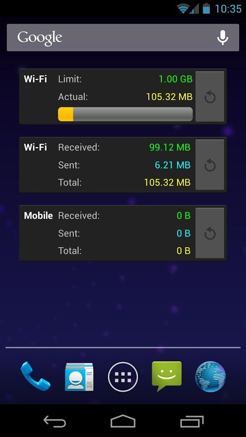 - раздельный подсчет Wi-Fi и GPRS+EDGE+3G