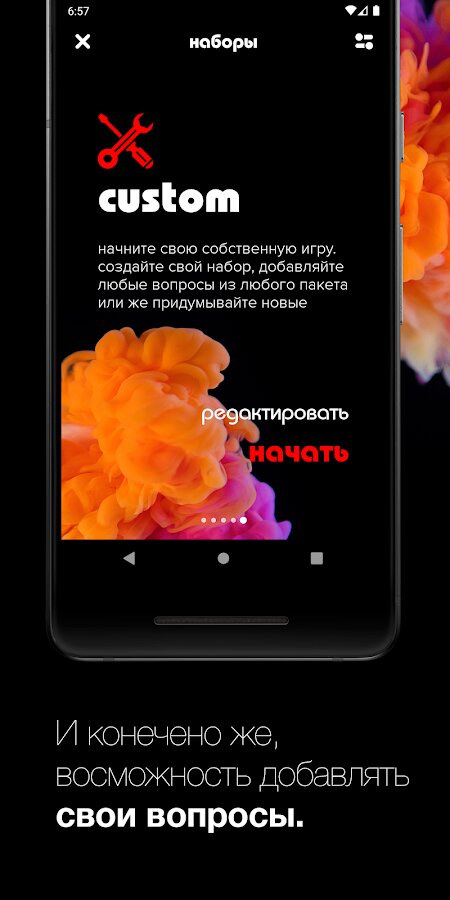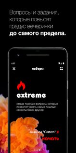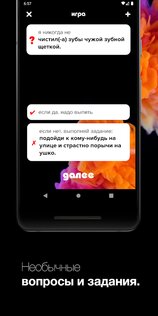 Здесь есть тысячи классных и горячих вопросов, а также различные задания, чтобы разогреть вечеринку в компании или пару! Вы узнаете в этой игре все что было или не было, без цензуры и без ограничений!