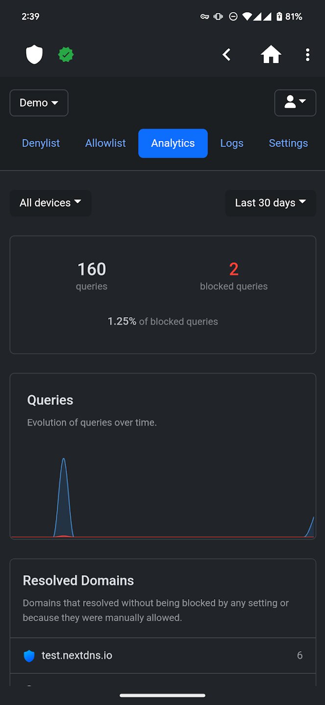 NextDNS Manager — это мощный инструмент для управления настройками, разработанный специально для устройств Android, которые используют сервис NextDNS. Это приложение упрощает процесс управления настройками NextDNS, позволяя вам управлять облачным DNS-брандмауэром и фильтром прямо с вашего мобильного устройства. Совместимое с Android 12L и более поздними версиями, оно предоставляет вам комплексные средства контроля сетевой безопасности и конфиденциальности.