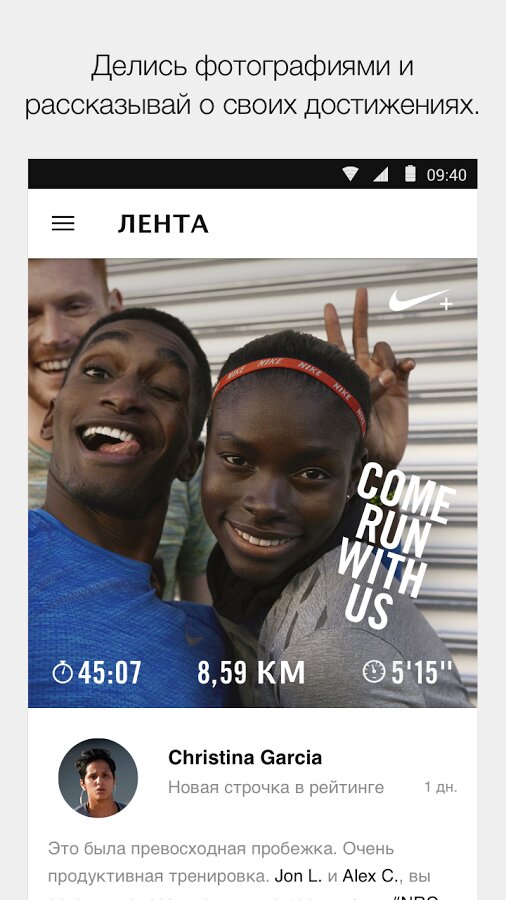 После окончания занятия Nike+ Running предложит вам оценить свое самочувствие. Программа показывает подробные данные по каждому занятию, позволяя сравнивать результаты прошлых забегов. Приложение Nike+ Running постоянно напоминает вам, что вы можете улучшить свои результаты, хоть на немного, но увеличить дистанцию или чуть-чуть прибавить в скорости. Это подстегивает к новым достижениям, к маленьким победам над самим собой.
