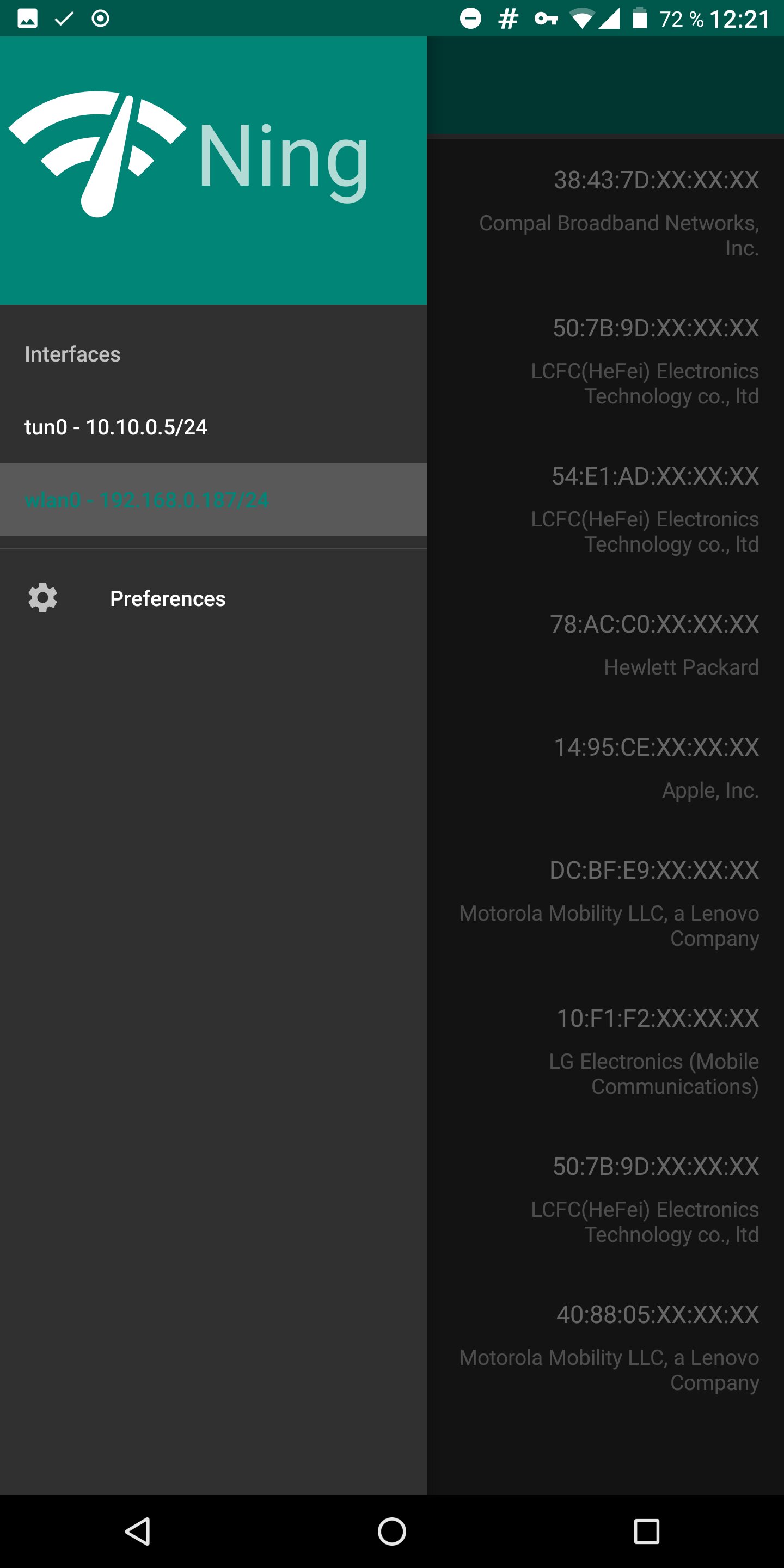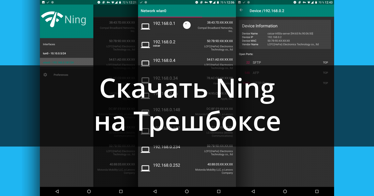 Ning — сканируйте локальную сеть для просмотра подключенных устройств. Вдохновлено приложением Fing. Цель приложения обеспечить быстрый и простой обзор локальной сети.