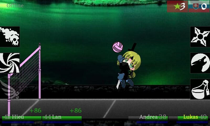 Ninja Volley 2 – волейбол с элементами RPG, в который играют ученики ниндзя. Вы готовили своих учеников и теперь настал момент проверить их способности в игре в волейбол. Это не простой волейбол в нем вы сможете выбрать себе понравившуюся команду, за которую будете играть, и сразиться с опасным соперником проверяя на деле свои рефлексы. Это быстро развивающаяся игра с 2D графикой и 18 специальными способностями, которыми обладают игроки. Бросьте вызов своим друзьям, и сразитесь с ними в волейбольной дуэли, настраивая своих игроков по своему усмотрению.
