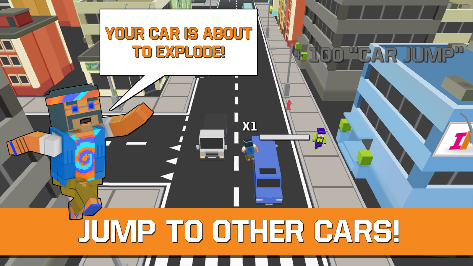 Можно использовать другие автомобили, например — есть возможность угона. Если вы ведете себя на дороге уж слишком нагло, то за вами начнется полицейская погоня. Также автомобили можно улучшать — добавлять броню или улучшать ходовые качества. Присутствует задорный саундтрек.