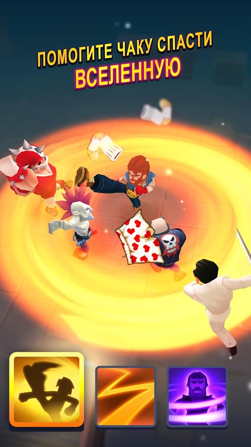 Делайте Чака Норриса еще сильнее, пока он избивает орды противников. Миссия: спасти все вселенные! Только не переживайте! Чак и без вас продолжит сражаться и зарабатывать награды!