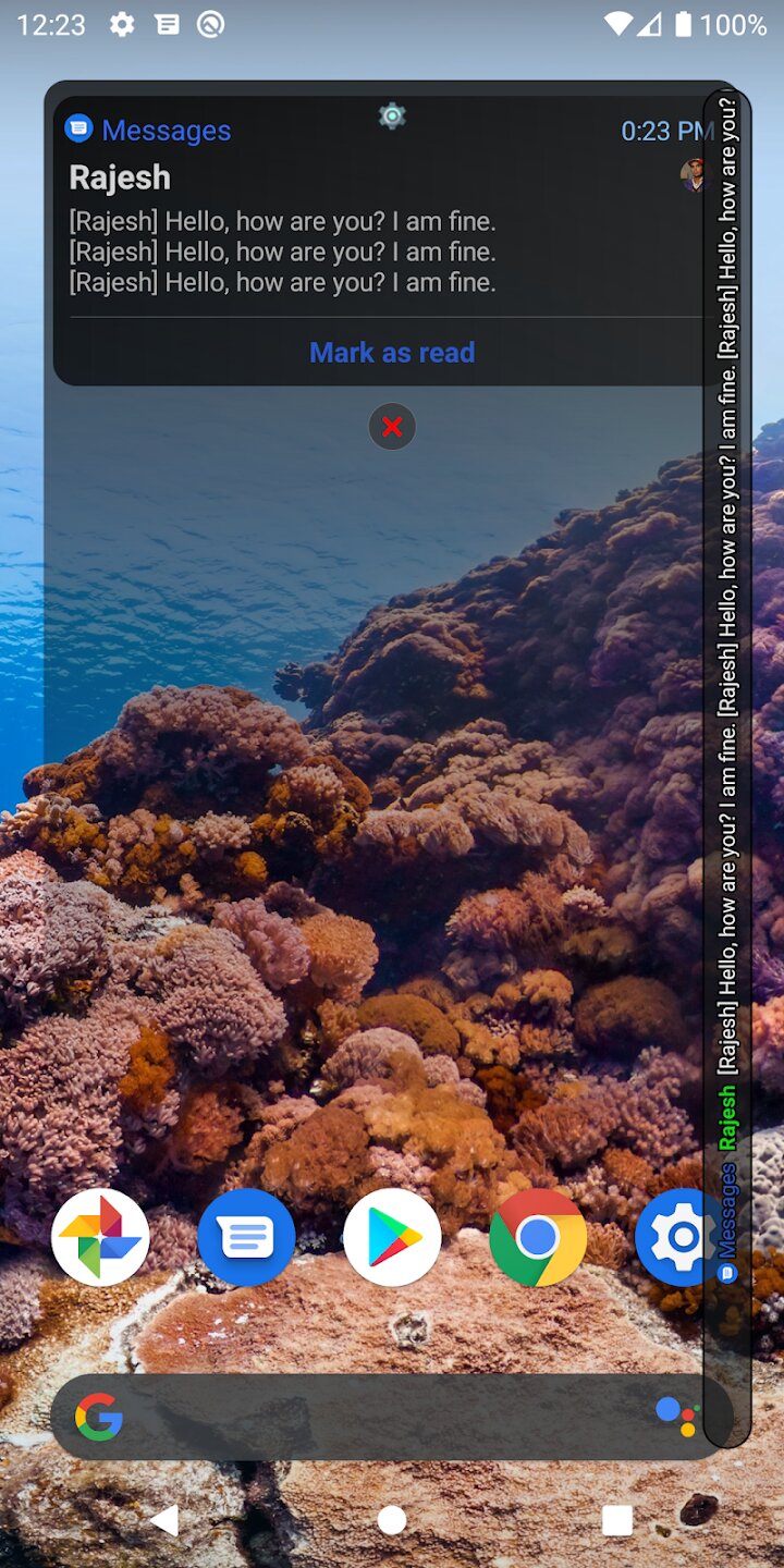 - Отображает уведомления приложений в виде незаметного прокручиваемого тикера новостей.