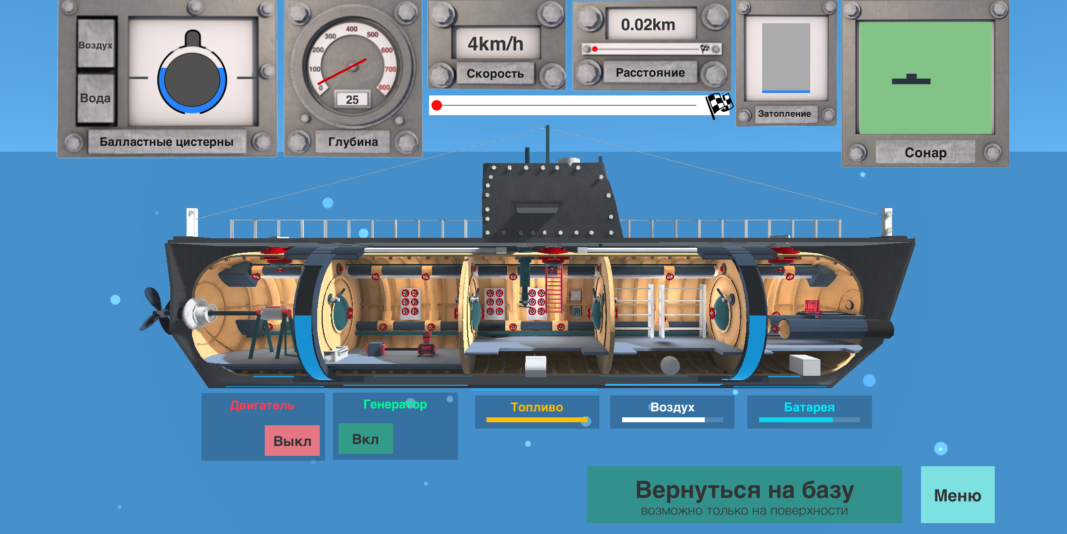 - уникальная система прокачки модулей подводной лодки;