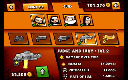 Nun Attack доставит вам ужасное развлечение посредством захватывающего игрового механизма, интуитивно понятным сенсорным экранным управлениeм и насмешливо-ироническиx диалогoв героев. Исследуй разные миры, вооружив твоих монахинь самым мощным арсеналом оружия, проведи их до верхнего уровня и отрази нападения врагов и боссов, побеждая сотни демонов.