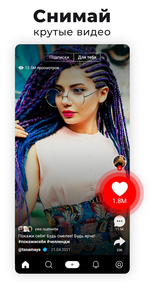 Создание челленджа. Есть крутая идея для челленджа? Опиши ее, придумай название и задай временные рамки. Готово, смотри как сотни участников выполняют твои задания и соревнуются за победные лайки!