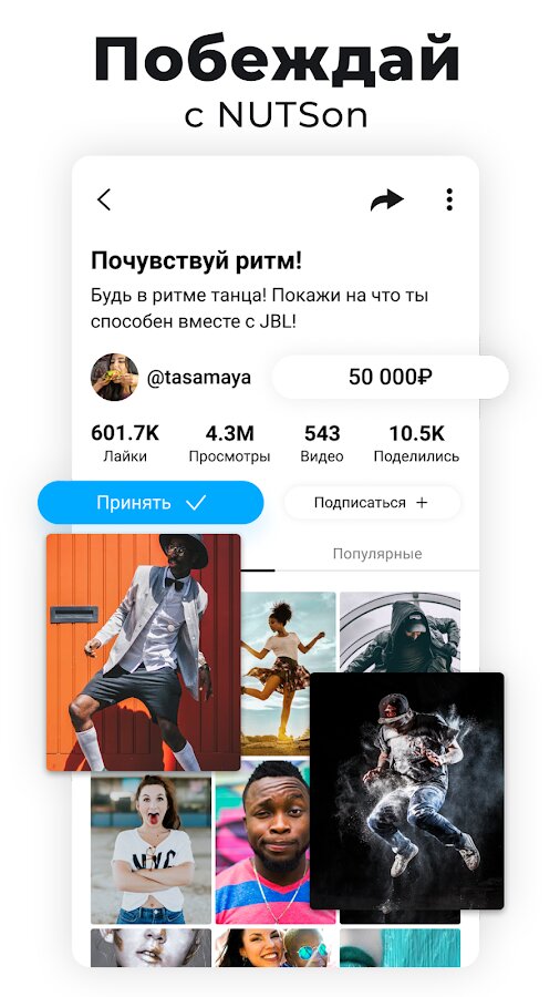 Челленджи. Стань автором новых трендов с NUTSon: запусти вирусный челлендж. Он может быть любым – спортивным, творческим, интеллектуальным, полезным, благотворительным, личным. Главное — привлечь к нему внимание! Сумасшедшие челленджи – одни из самых популярных в NUTSon.
