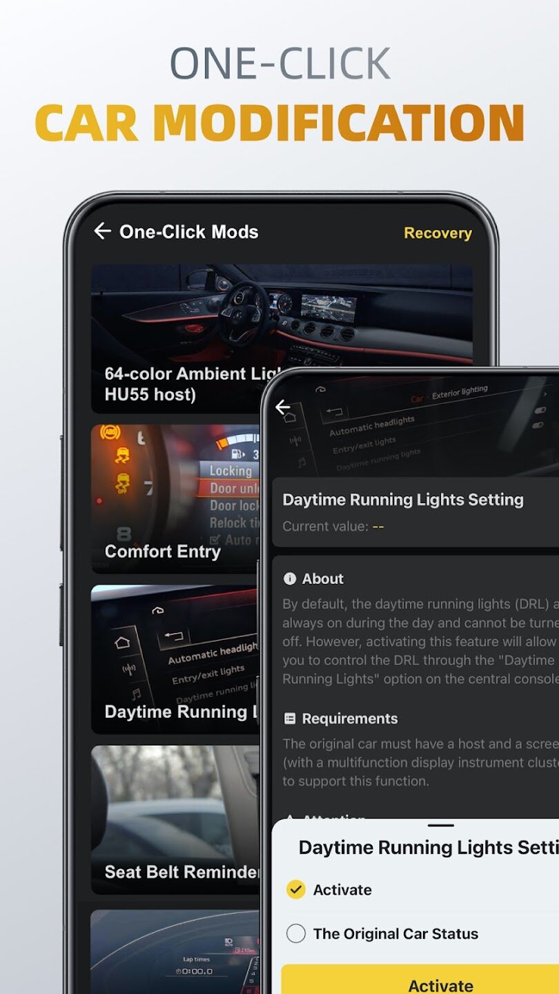- Настройка и адаптация автомобиля одним касанием.