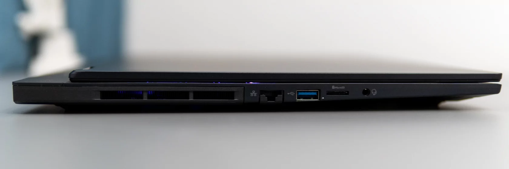 Несмотря на всё, в ноутбук вместилось множество различных портов, среди которых три полноразмерных USB-A (до 3.2 Gen 2), два USB-C (один из которых Thunderbolt 4), один HDMI 2.1 и даже один картридер microSD. Конечно, нашлось место и комбинированному аудиоджеку.