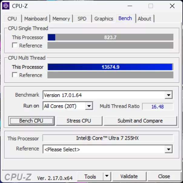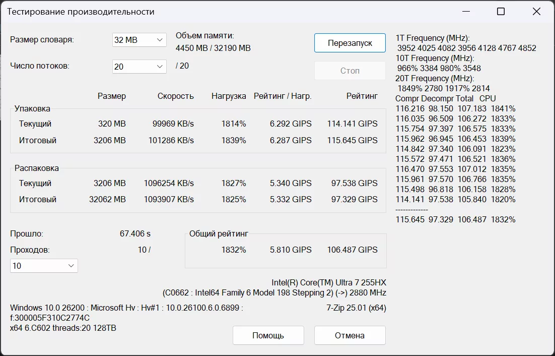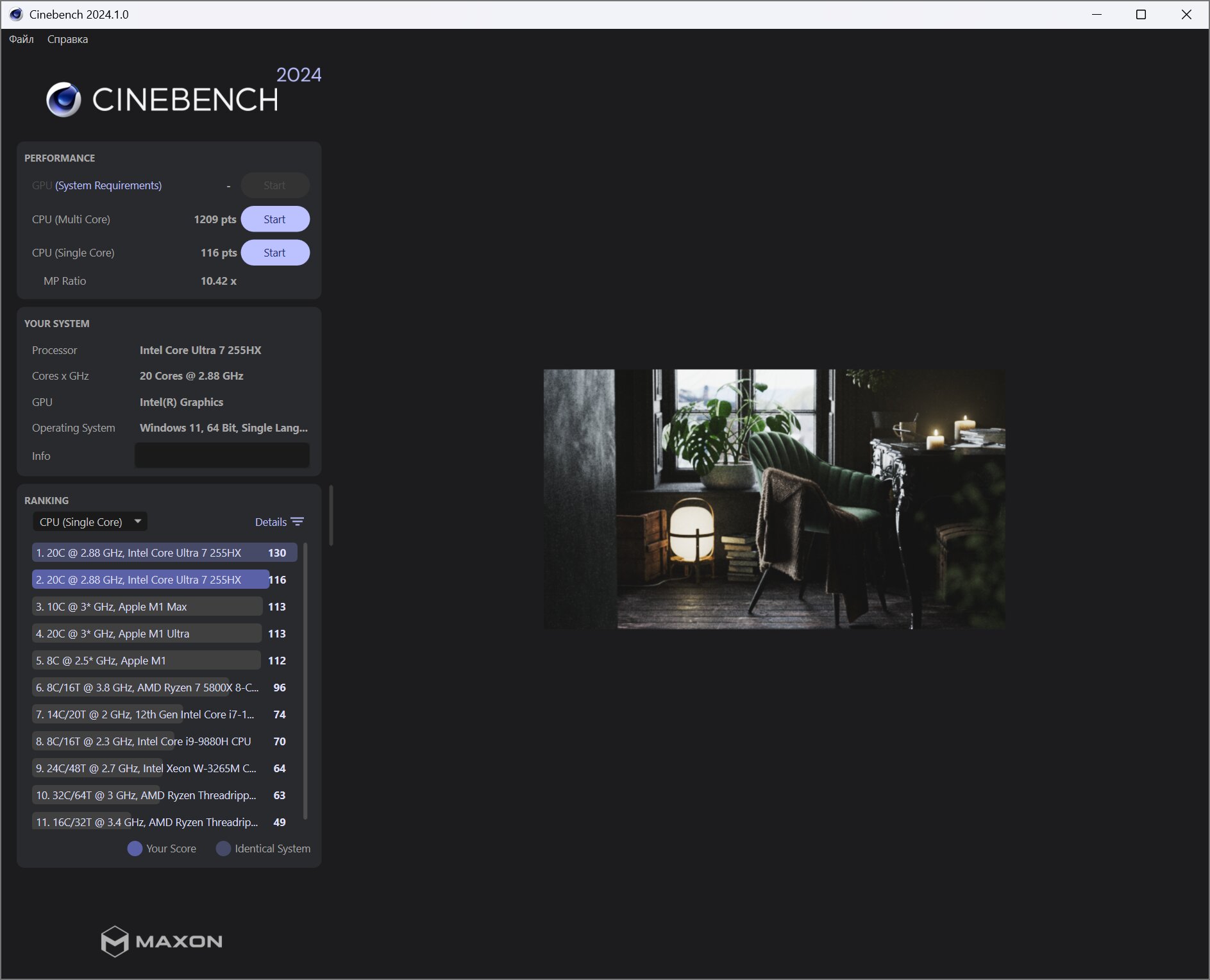 - Процессор: Intel Core Ultra 7 255HX, 8× P-ядра на 2,4 ГГц (5,2 ГГц в Turbo) и 12× E-ядра 1,8 ГГц (4,5 ГГц в Turbo), нейронный блок на 13 TOPS.