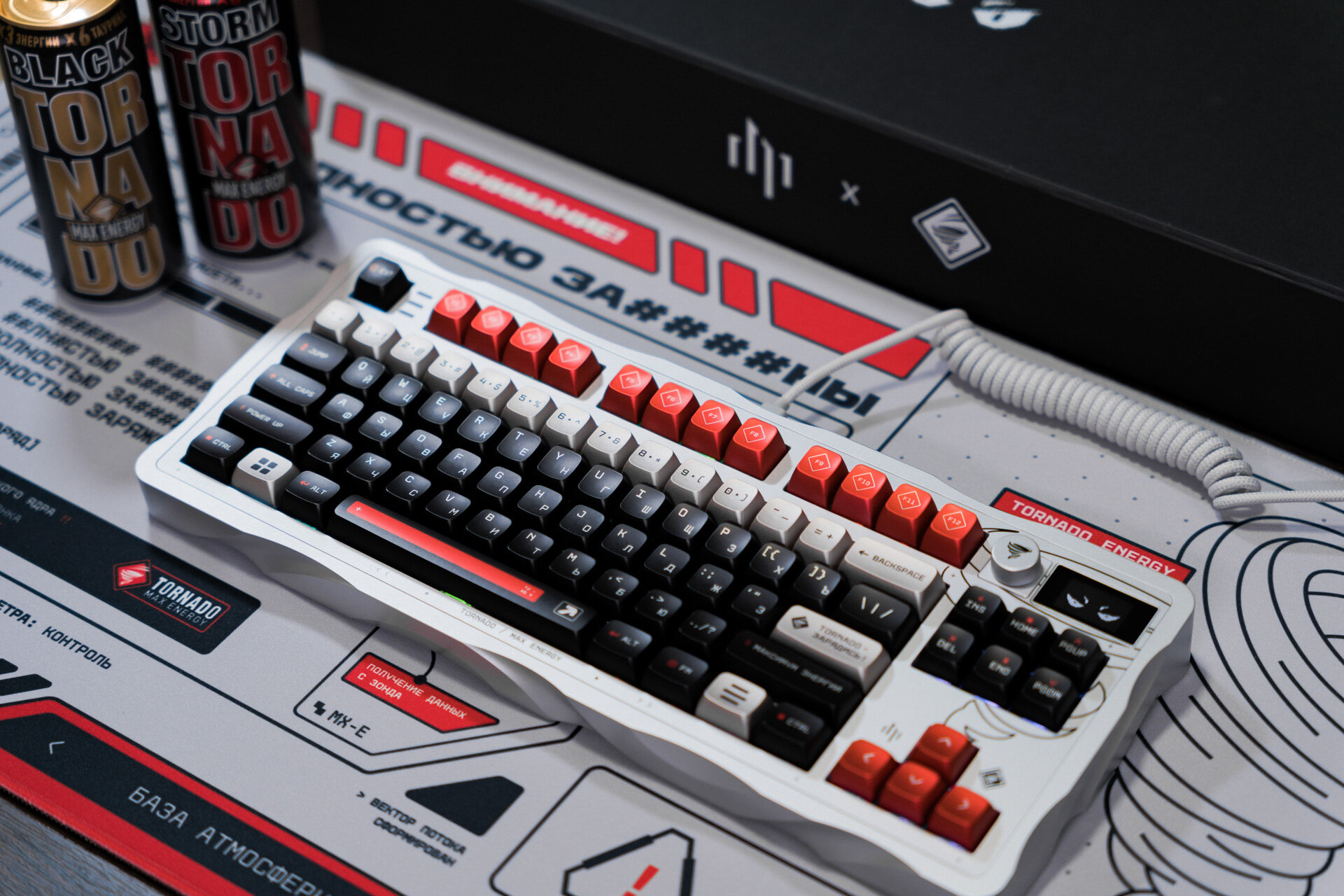 У новинки от «Дарк Проджект», созданной в коллаборации с TORNADO MAX ENERGY, «изюма» более чем достаточно — дисплей, реагирующий на действия в игре, выглядит крайне интересным решением, плюс похвалы заслуживают переключатели, кейкапы и цельнометаллический корпус. Существенный минус у модели, пожалуй, всего один — её банально нельзя купить.