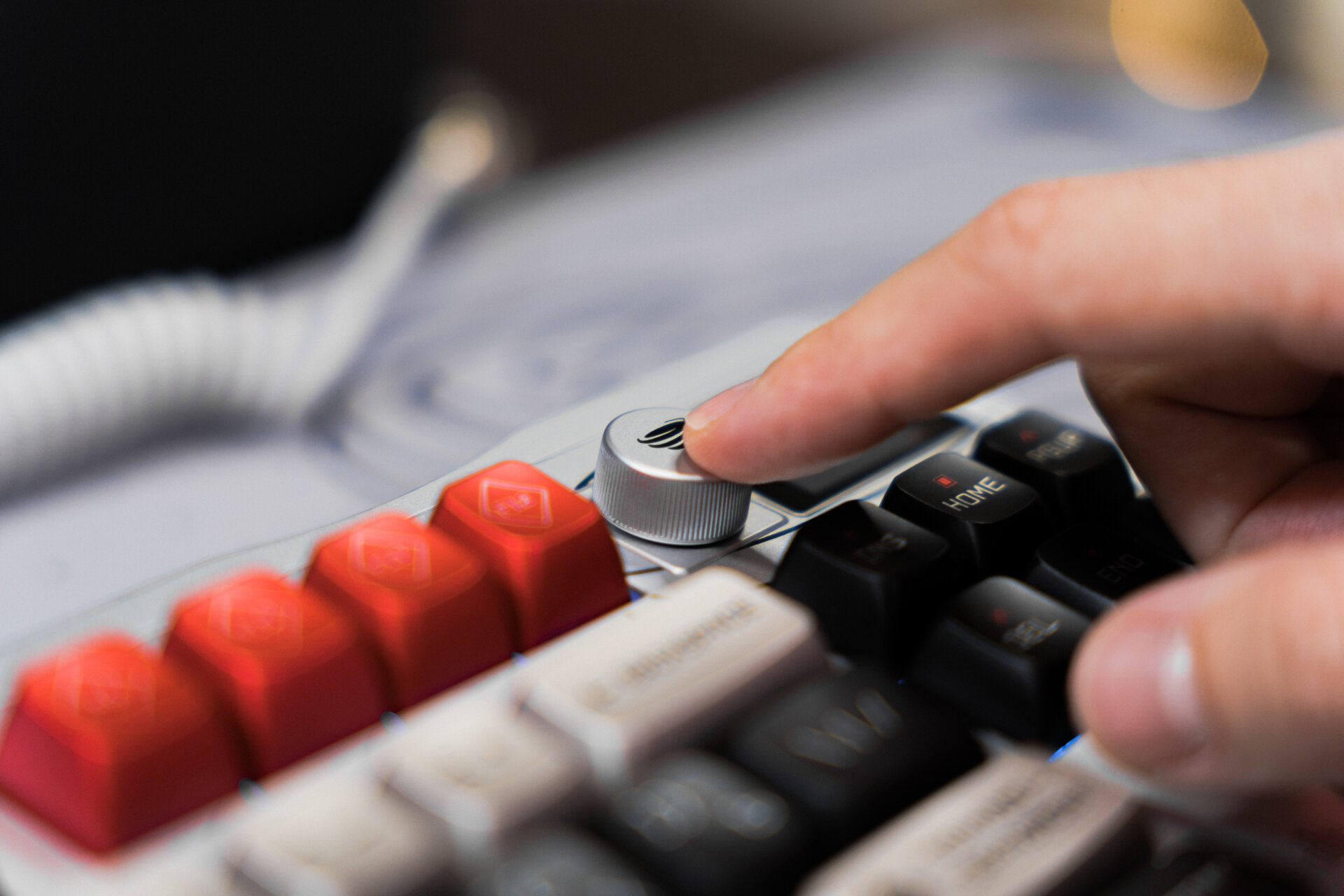 Рядом с OLED-дисплеем расположен программируемый энкодер (он же «кноб»), который отвечает за настройку громкости системы. Решение невероятно удобное — говорю как владелец клавиатуры с похожим кнобом, на которой работаю уже больше года. Вместо того, чтобы использовать мультимедийные клавиши на клавиатуре или настраивать громкость в ручном режиме при помощи мышки, достаточно прокрутить «шайбу» за часовой стрелкой или против неё, добившись нужного результата. Кроме того, на кноб можно нажать — в этом случае элемент клавиатуры полностью отключает звук (а если нажать ещё раз — активирует его на той же громкости, что и до мьюта).