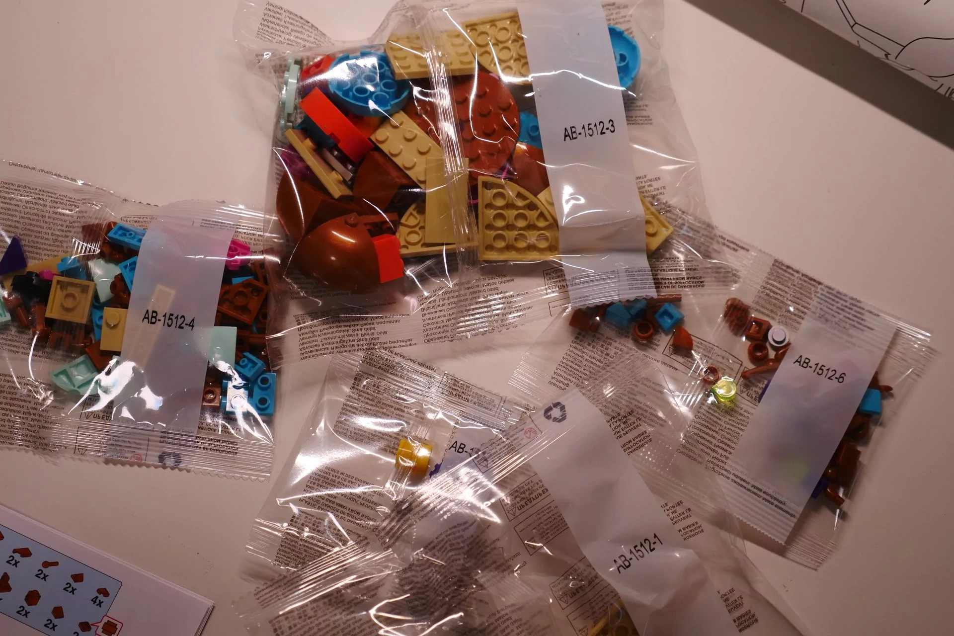 Для начала хотелось бы обратить внимание на то, что сборка конструктора из наборов, к сожалению, не идёт по пакетам, когда детали отсортированы по этапу. Вместо этого детали отсортированы по типоразмеру — соответственно, на первом шаге могут понадобится детали из всех доступных в наборе пакетов.