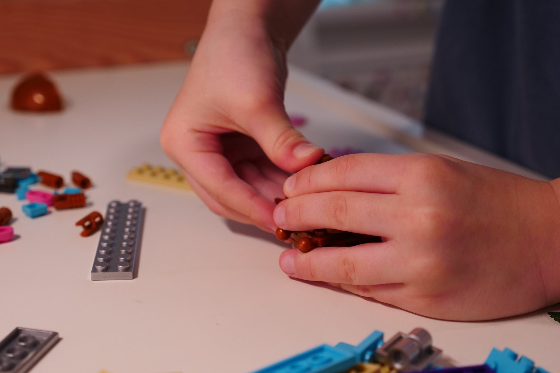 Ещё немного удивил тот факт, что иногда в наборах встречаются детали с неоднородным окрасом — например, вот на снимке можно заметить два оттенка голубого цвета, которые весьма заметно отличаются друг от друга.
