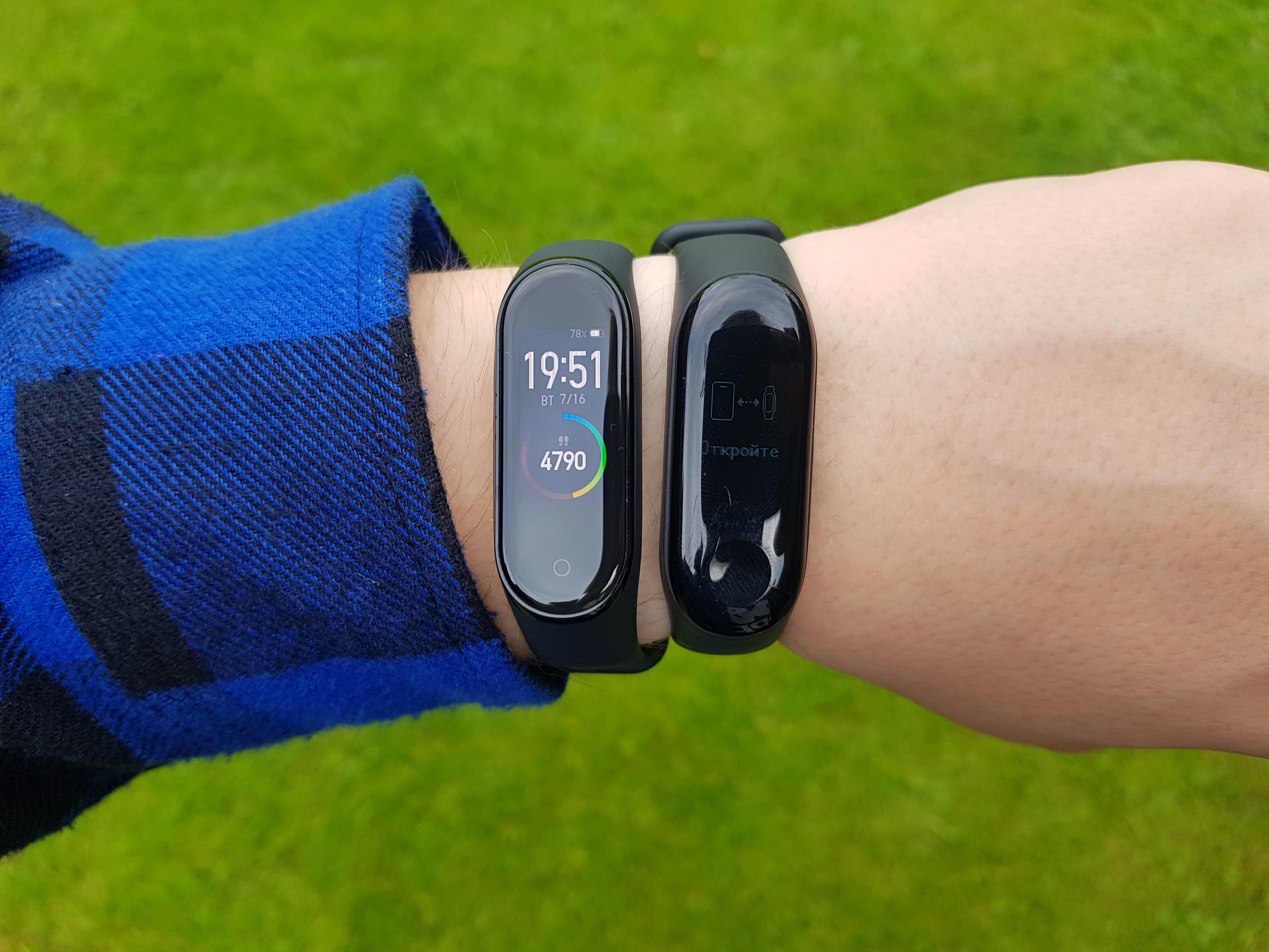 В сравнении с Xiaomi Mi Band 3 видимость на улице стала значительно лучше. Разницу вы можете увидеть на фотографии