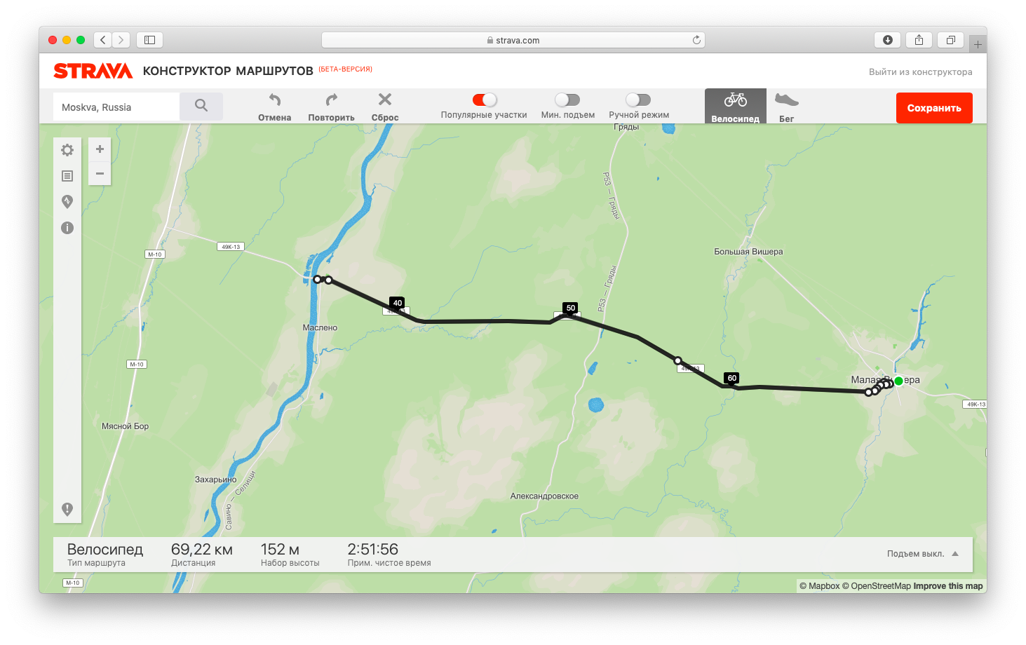 Специально для теста я выбрал маршрут, по которому проеду на велосипеде, чтобы выяснить, насколько Mi Band 4 будет полезен в этом занятии. Общее расстояние моего небольшого велопутешествия составило 69 километров. Выезжал я из Малой Вишеры до посёлка Селищи, находящегося на берегу реки Волхов, которая протекает в Новгородской области.