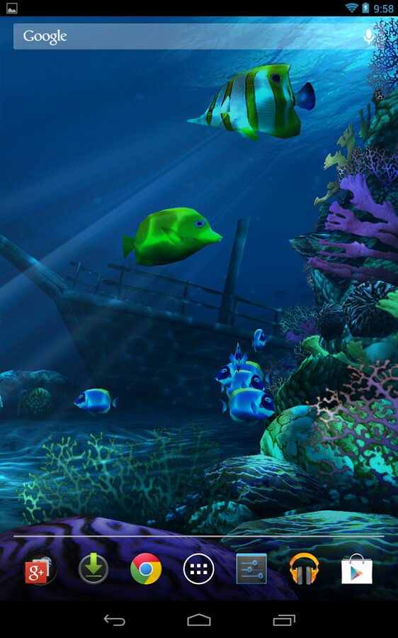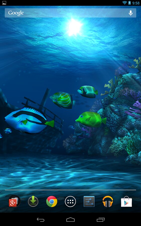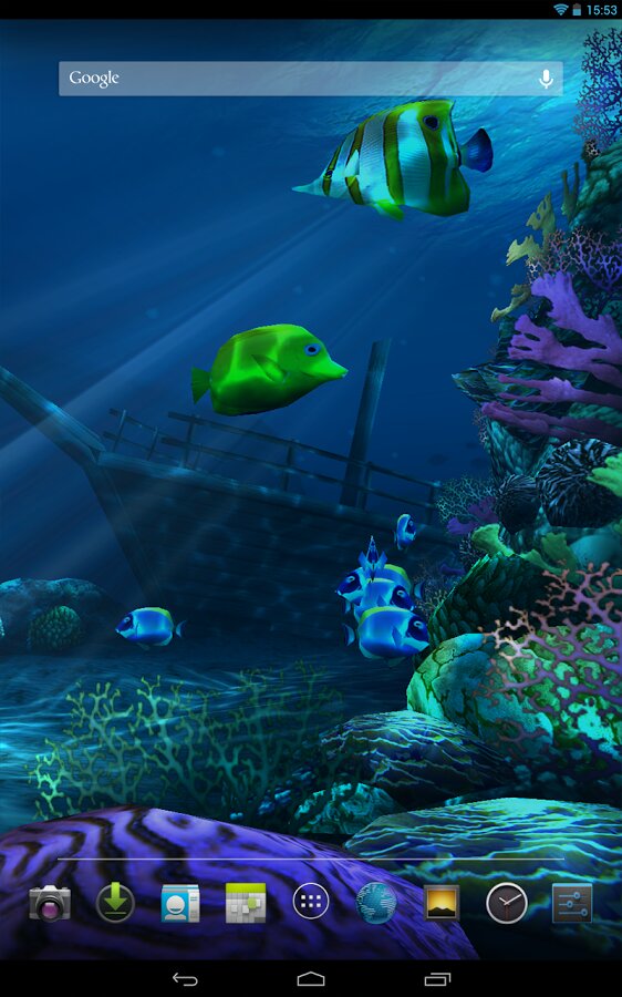 На мой взгляд это одна из лучших тем на андроид. Графика просто потрясающая и имеется огромная возможность настройки. Можно удалять и добавлять рыб, менять саму заставку, качество картинки и многое другое. Здесь последняя версия с маркета. И хочу отметить, что это, пожалуй, единственные живые обои, которые не тормозят и почти не грузят ОЗУ телефона. Скачивайте и наслаждайтесь красотой океана!