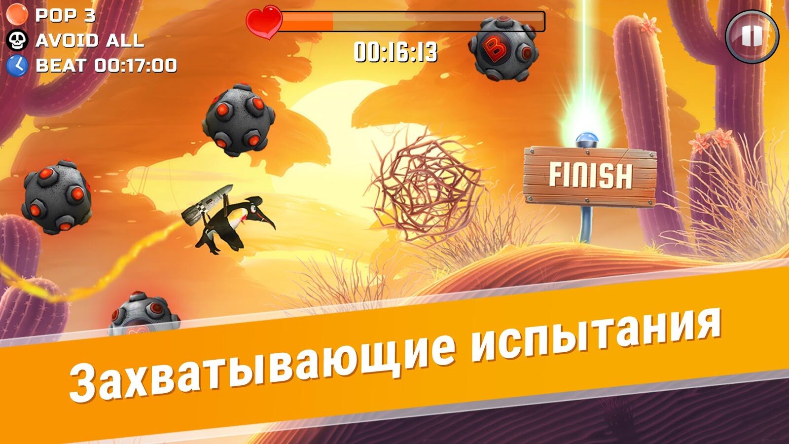 Соревнуйся с другими игроками: улучшай своих персонажей, летай дальше и проворнее и бей чужие рекорды, получая за это награды.
