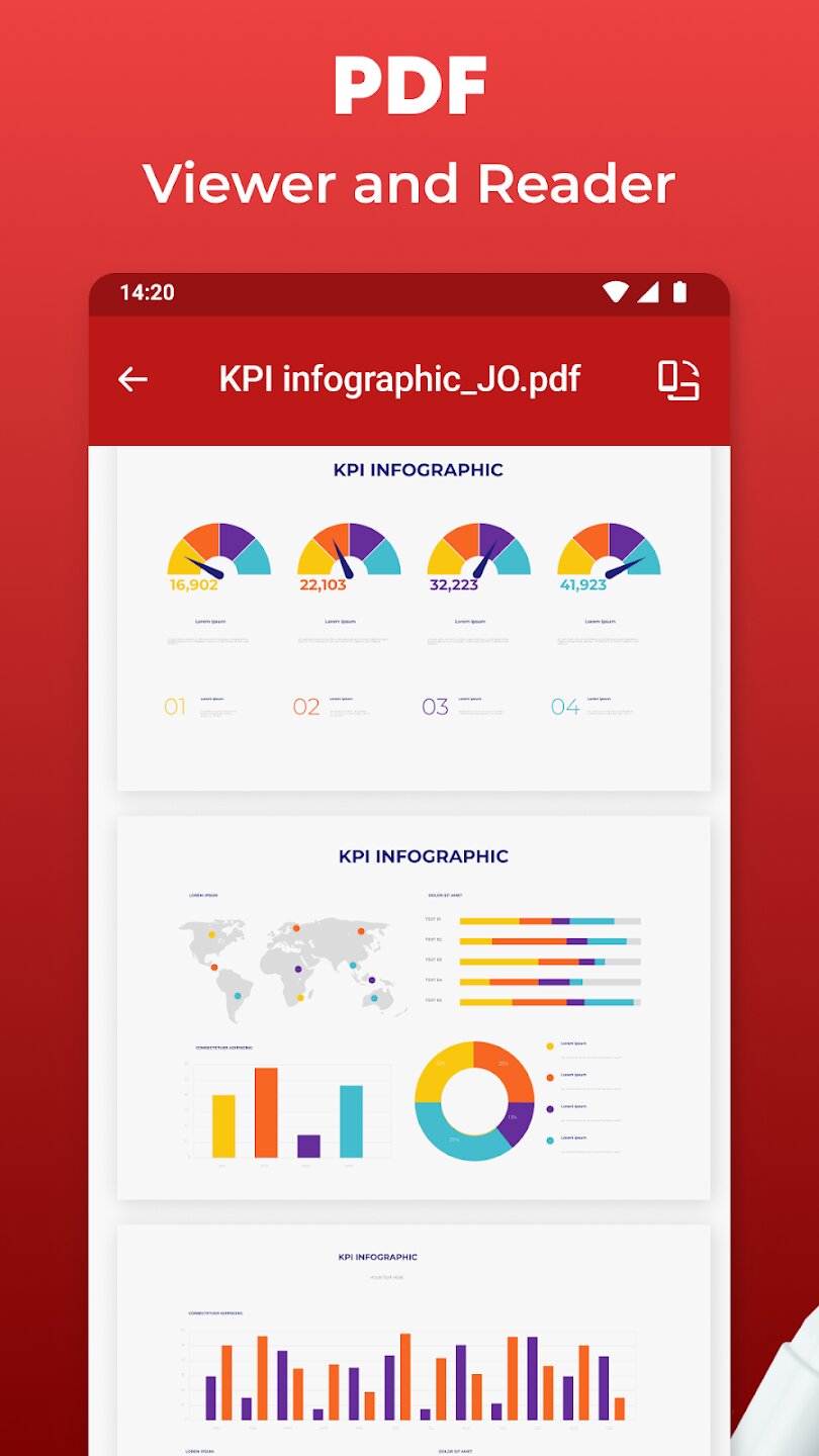 Office Reader предоставляет универсальное решение для доступа ко всем вашим важным файлам прямо на вашем телефоне. Это мощное приложение устраняет необходимость в использовании нескольких специализированных программ, объединяя поддержку документов Word, Excel, PowerPoint, PDF и текстовых документов в одном оптимизированном пакете. Оно разработано с учетом скорости и простоты, позволяя мгновенно открывать файлы с чистым интерактивным макетом. Независимо от того, нужно ли вам просмотреть отчет, проверить таблицу или прочитать электронную книгу, это приложение служит универсальным центром хранения документов.