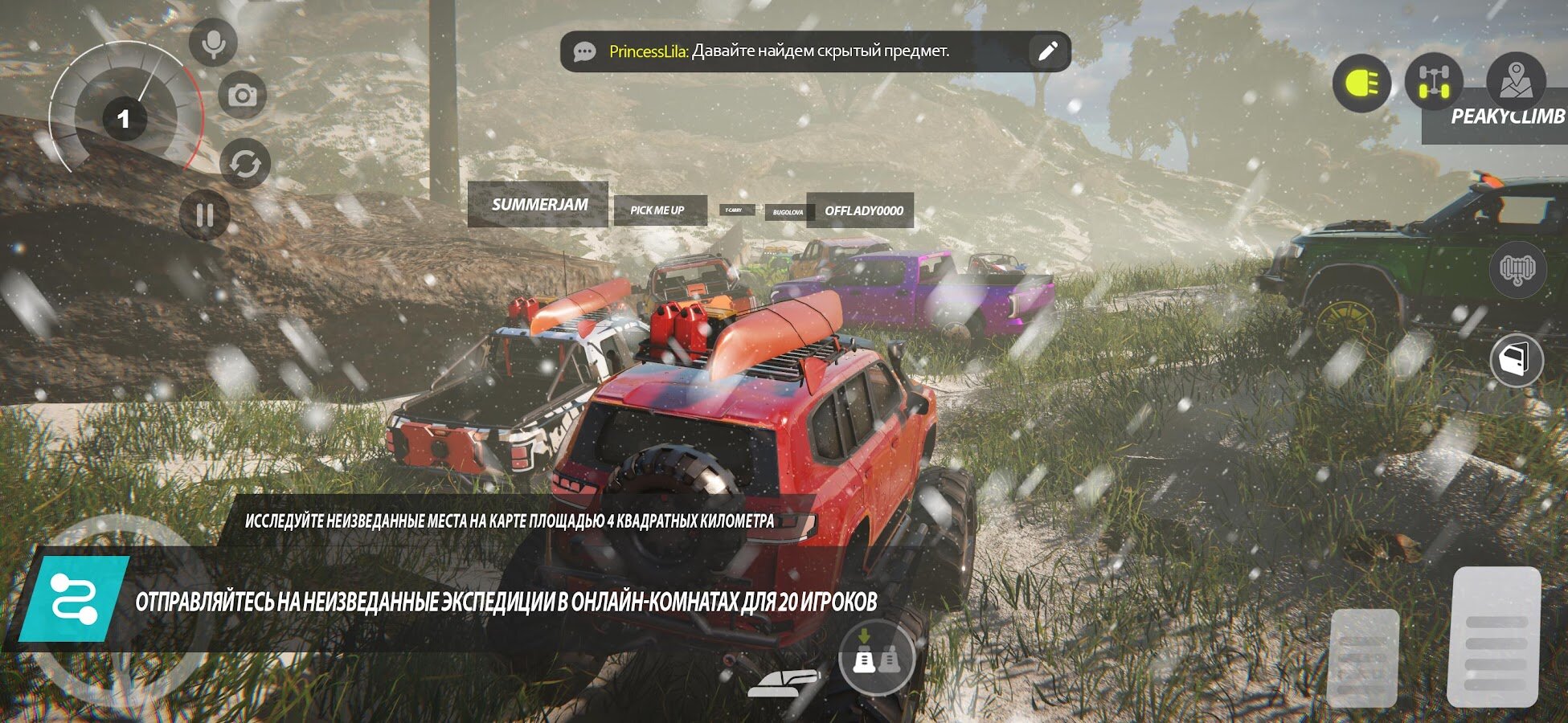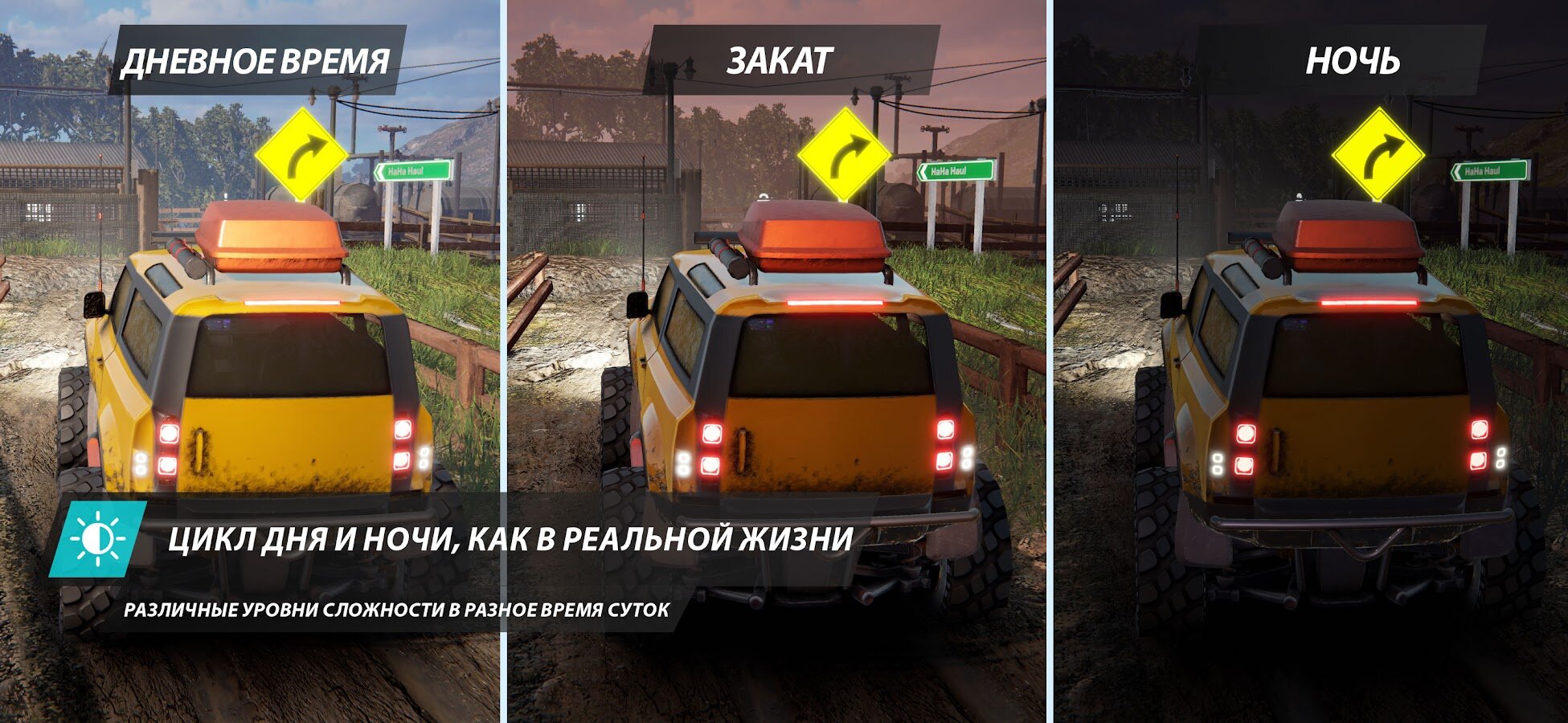 Отправляйтесь в огромный открытый мир площадью 4 км², прокладывайте маршрут по горам, грязи и рекам, собирайте уникальные автомобили и участвуйте в онлайн-заездах. Графика уровня ПК и реалистичная физика делают каждую поездку настоящим испытанием и удовольствием.