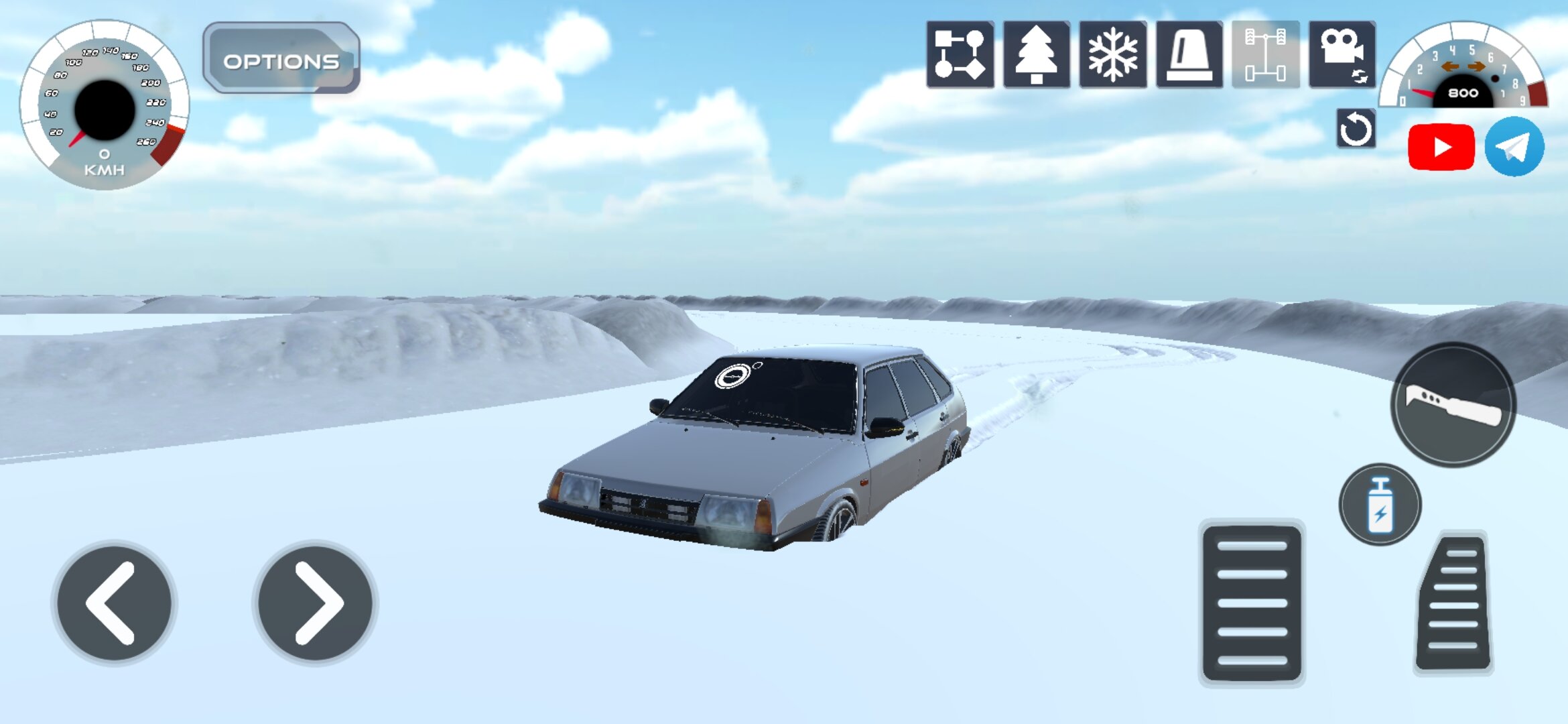 - Реалистичная система деформации снега под колесами