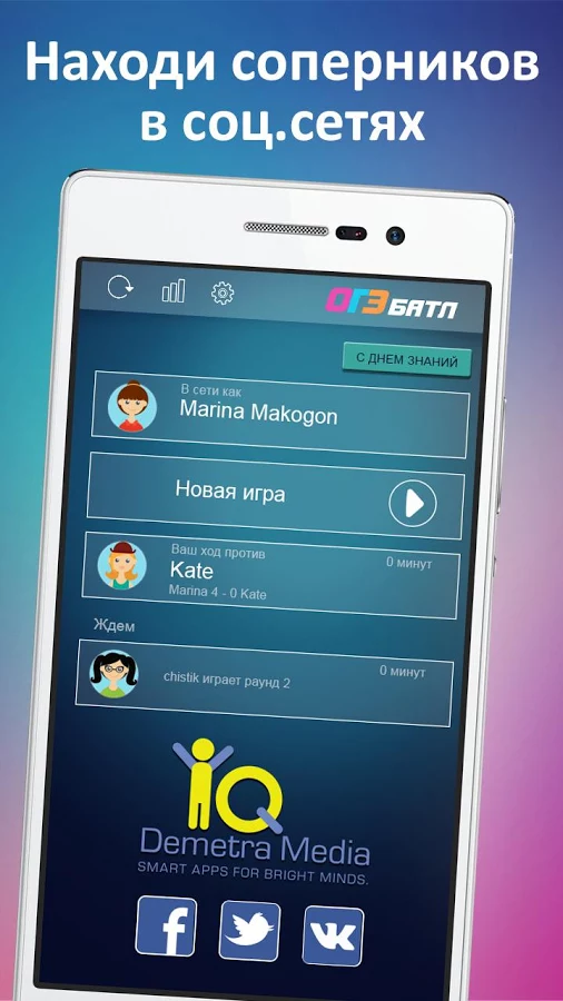 ОГЭ: Батл — это не просто подготовка к ОГЭ, ГИА или ЕГЭ. Впервые перед тобой не учебник, а полноценная викторина, борьба умов, где предмет можно выучить, играя с друзьями! Еще никогда учиться не было так увлекательно! Теперь изнуряющая подготовка к экзамену останется в прошлом. Уникальная игра-викторина для тренировки перед ОГЭ поможет вам проверить свои знания по таким предметам:
