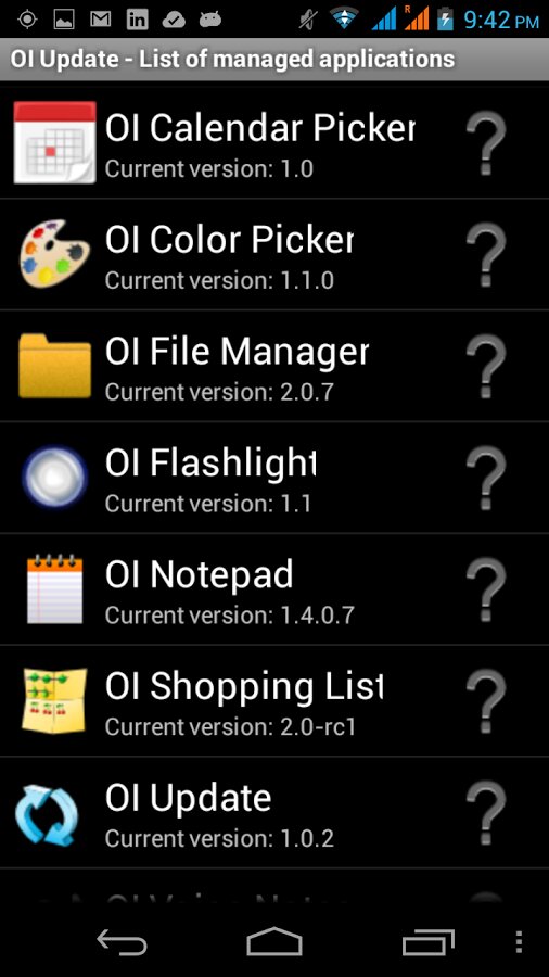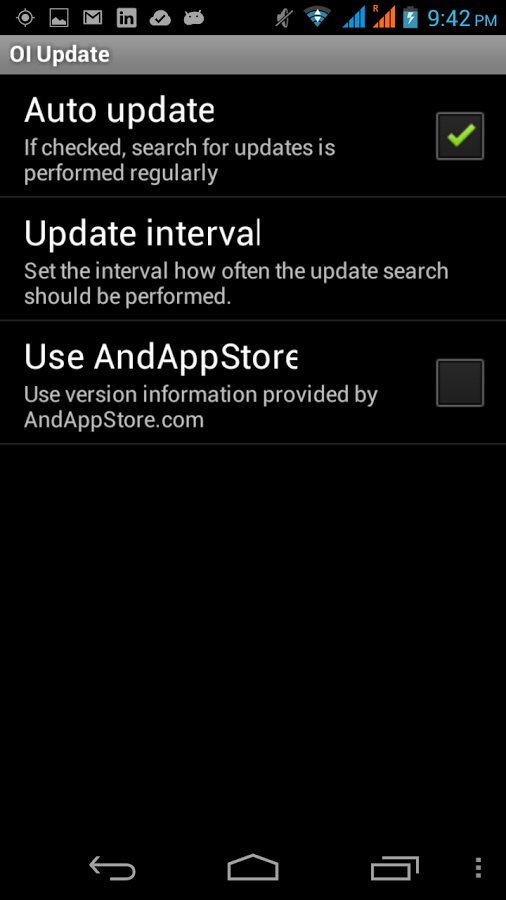 OI Update — бесплатное приложение для Android, которое периодически проверяет в интернете наличие обновлений всех установленных на коммуникаторе программ. Проверка происходит как автоматически, так и вручную. Периодичность автоматической проверки задается в настройках OI Update.