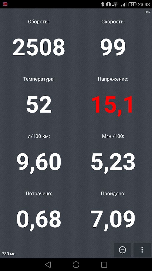 Olivia Drive — данное приложение представляет собой бортовой компьютер для автомобилей работающих по интерфейсу OBDII стандарта SAE J1979. Способно отображать следующие данные: