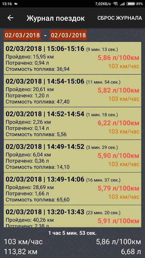 - Мгновенный расход автомобиля: в час/ на 100 км;