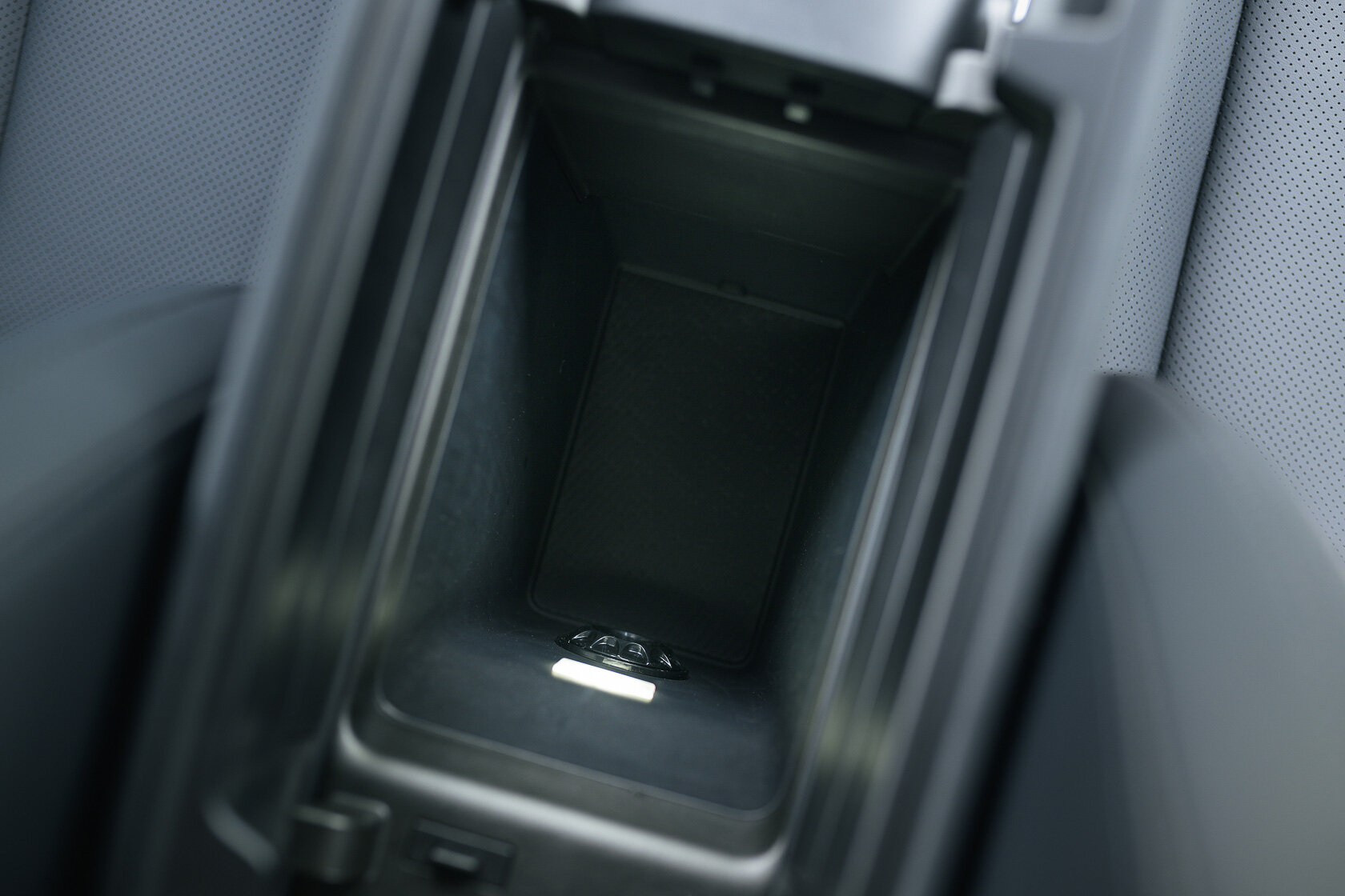 Под шторкой фиксаторы тары и небольшая ниша. В подлокотнике (без регулировок) солидная ниша с обдувом.