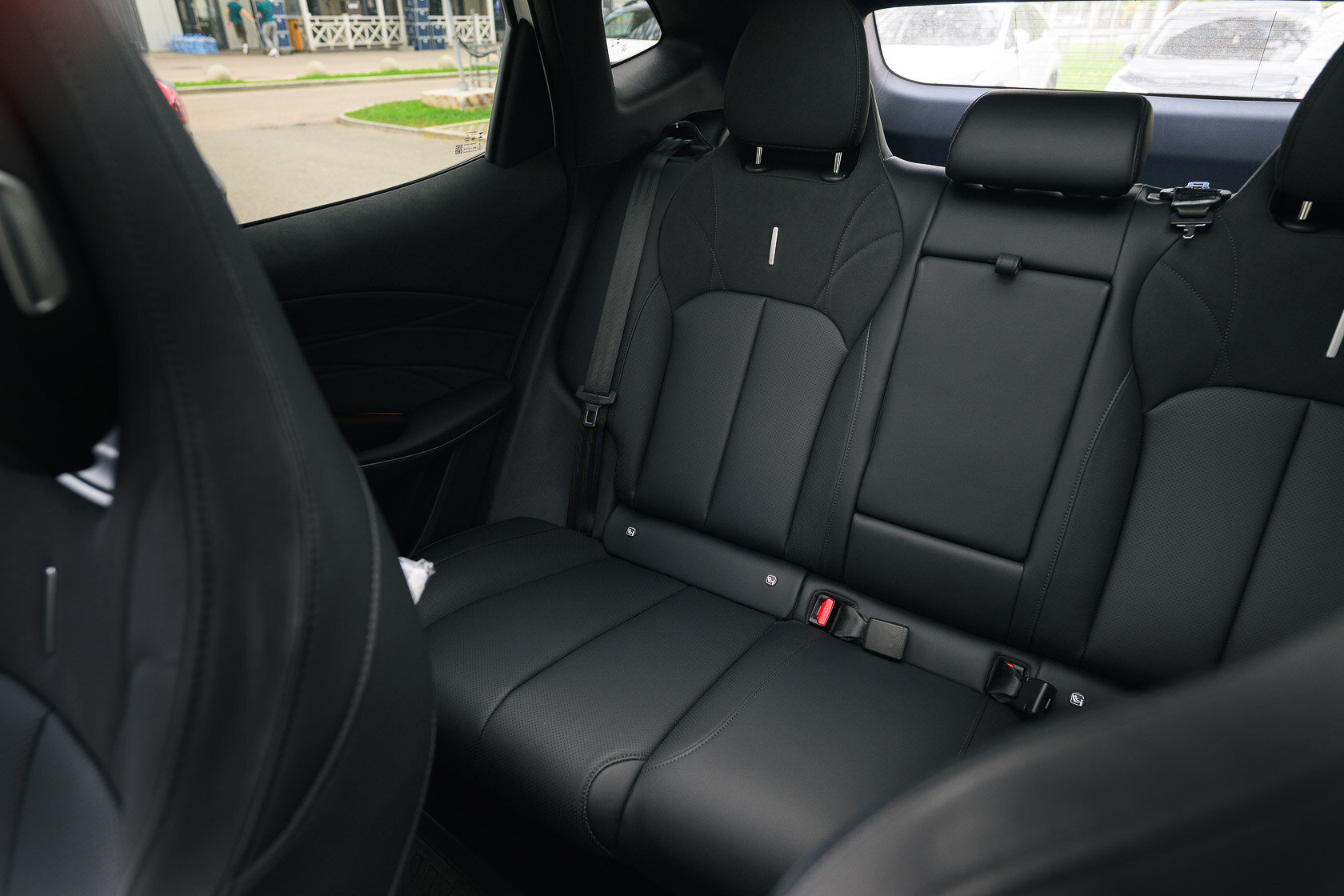 За чёрной отделкой салона можно и не заметить а-ля спортивные кресла. А ещё, стоит упомянуть, что подушки кресел спереди немного увеличены. Кто там переживал за «жёрдочки» в китайских авто?