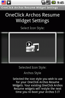 OneClick Archos Resume Widget — виджет для рабочего стола Android-смартфона, с помощью которого вы сможете продолжить прослушивание музыки или просмотр фильма, фотографий, прерванное входящим звонком или каким-либо другим событием. Достаточно просто тапнуть на виджете и вы перейдете на тот момент песни или фильма, на котором прервались.
