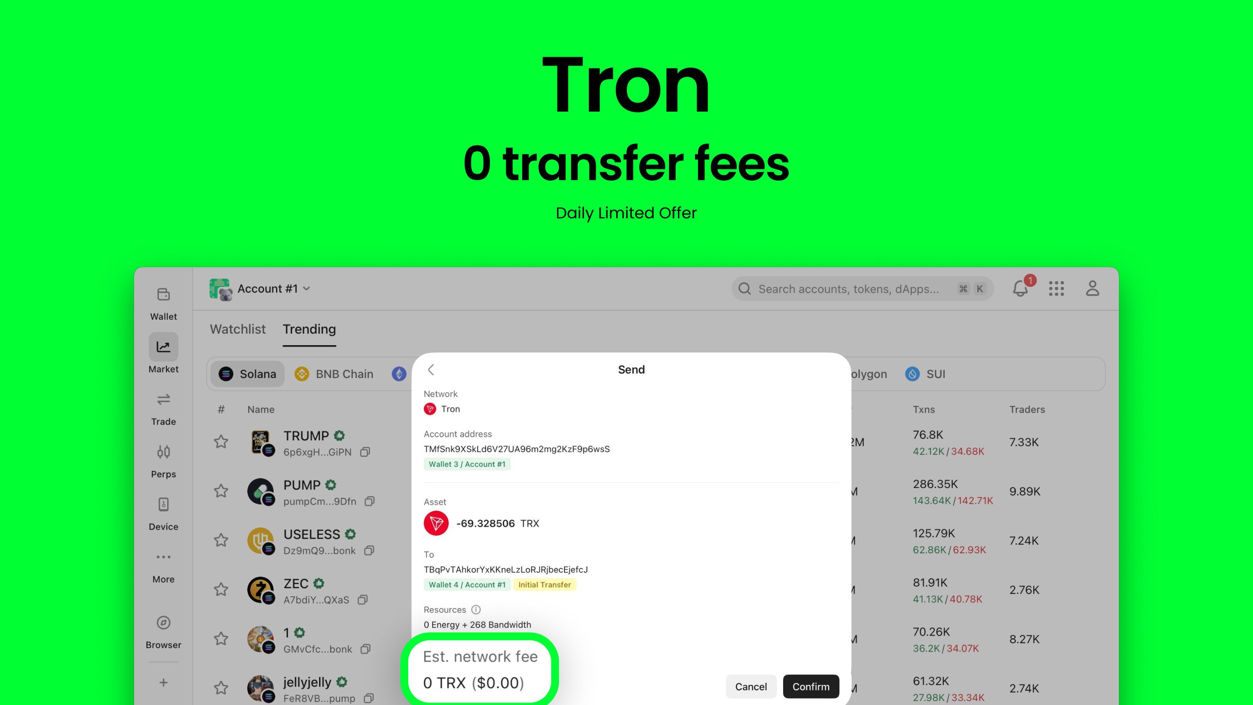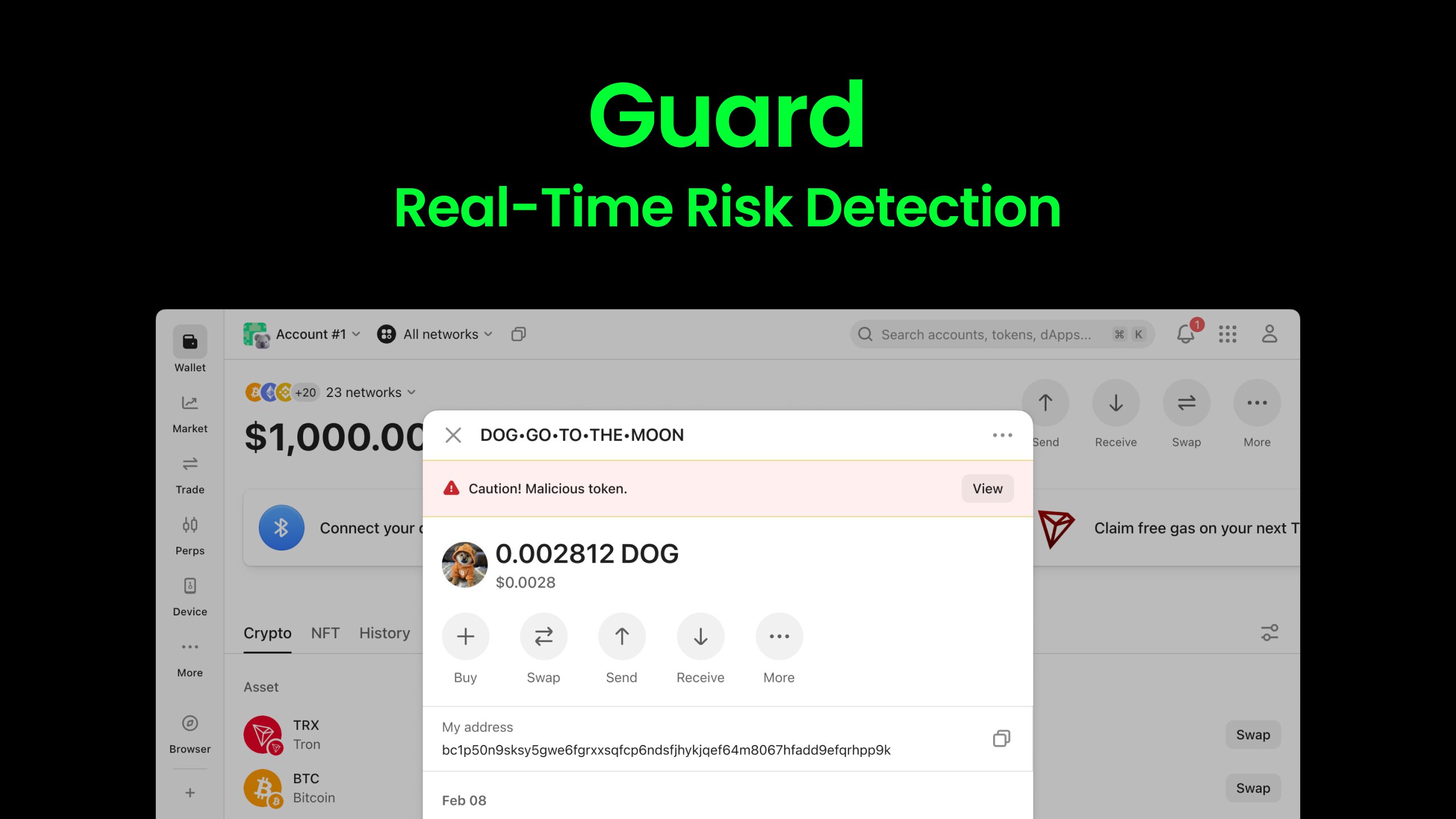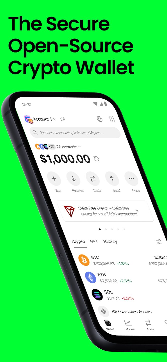 - МНОГОЦЕПНАЯ ПОДДЕРЖКА. Биткойн, Lightning Network, Solana, Ethereum, Aptos, Near, STC, DOGE, LTC, Tron, цепи EVM (BSC, Arbitrum, Avalanche, Optimism, Polygon, CELO, CRO, FTM, HECO, OEC, xDai и настроенная сеть EVM).