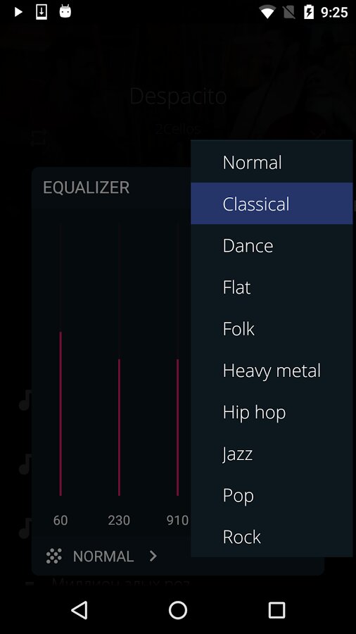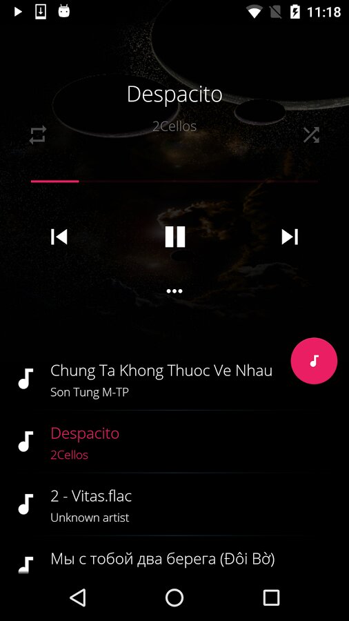 - Воспроизведение песни из папки, плейлиста, исполнителя, альбома или жанра;