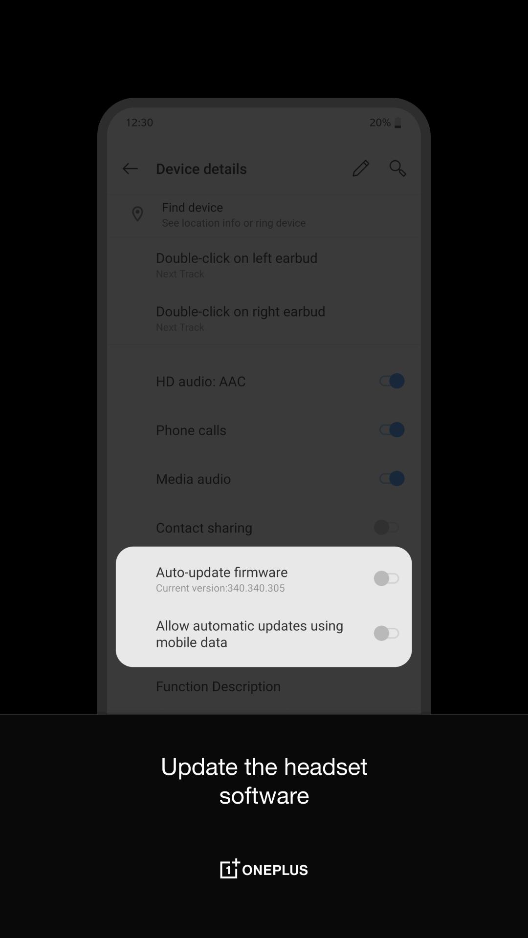 Приложение OnePlus Buds позволяет обновлять прошивку OnePlus TWS и изменять ее настройки.