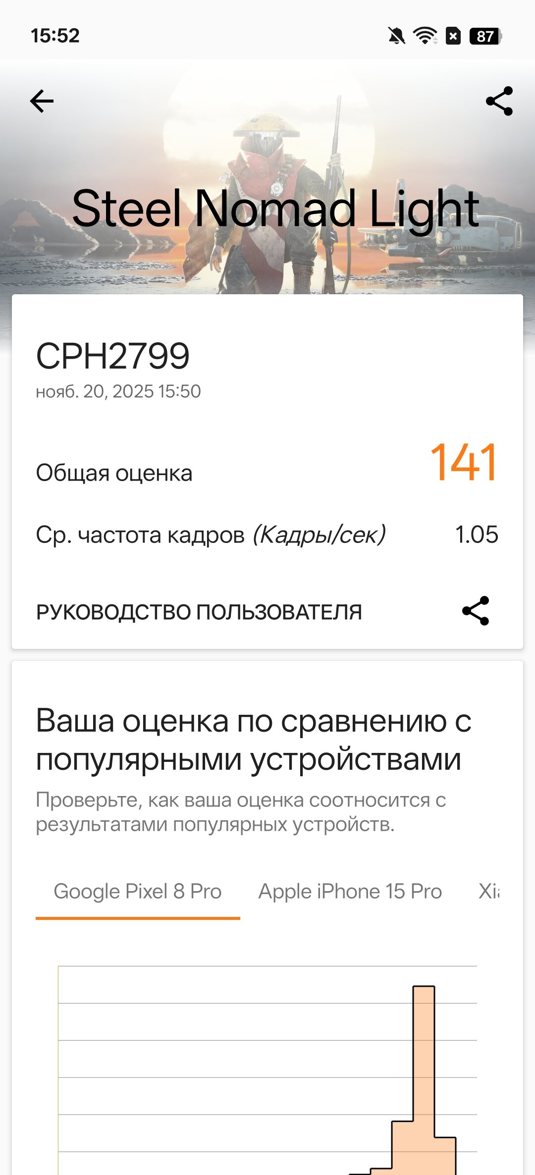 Чип работает в связке с оперативной памятью типа LPDDR4X на 8 ГБ и хранилищем типа UFS 2.2 на 256 ГБ, показывая достойный результат в бенчмарках.