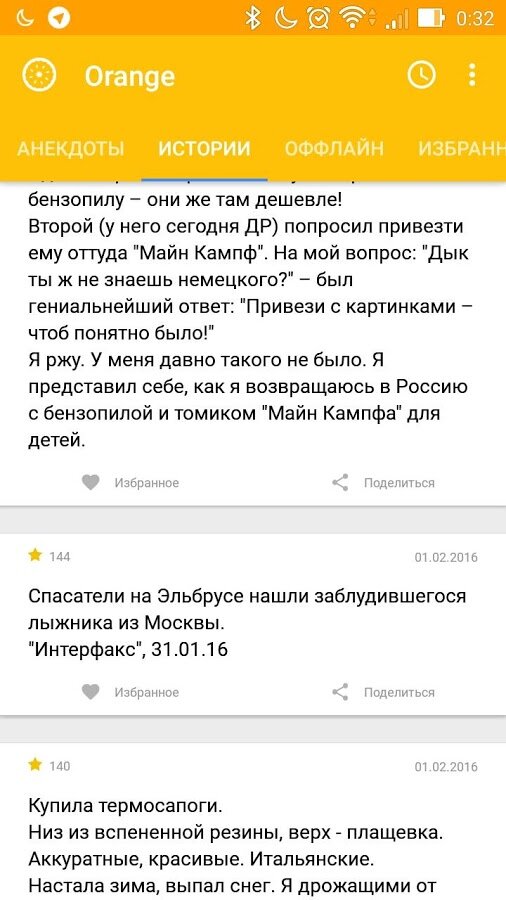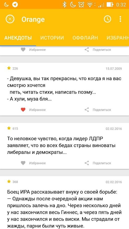 - Оффлайн режим. Сохраняйте все анекдоты и истории себе на устройство и читайте без подключения к интернету;