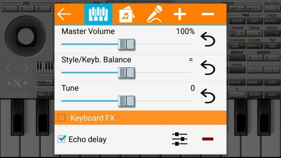 Немаловажной деталью является изобилие доступных стилей и драм-наборов. Благодаря этому ваш смартфон превращается в полноразмерный синтезатор с невероятными возможностями.Но если вы желаете раскрыть все возможности программы, вам потребуется полноразмерная клавиатура, которую можно подключить к вашему гаджету с помощью USB-MIDI-кабеля. И тогда перед вашей музыкой сдадутся даже боги.