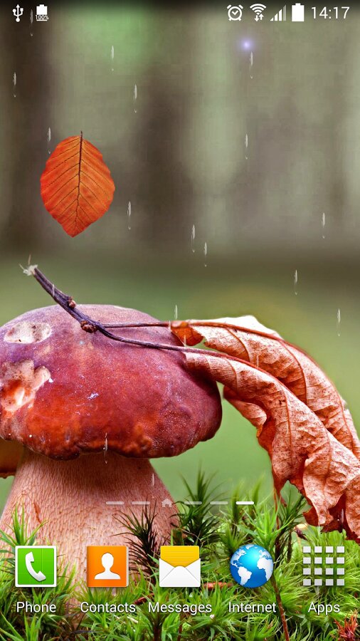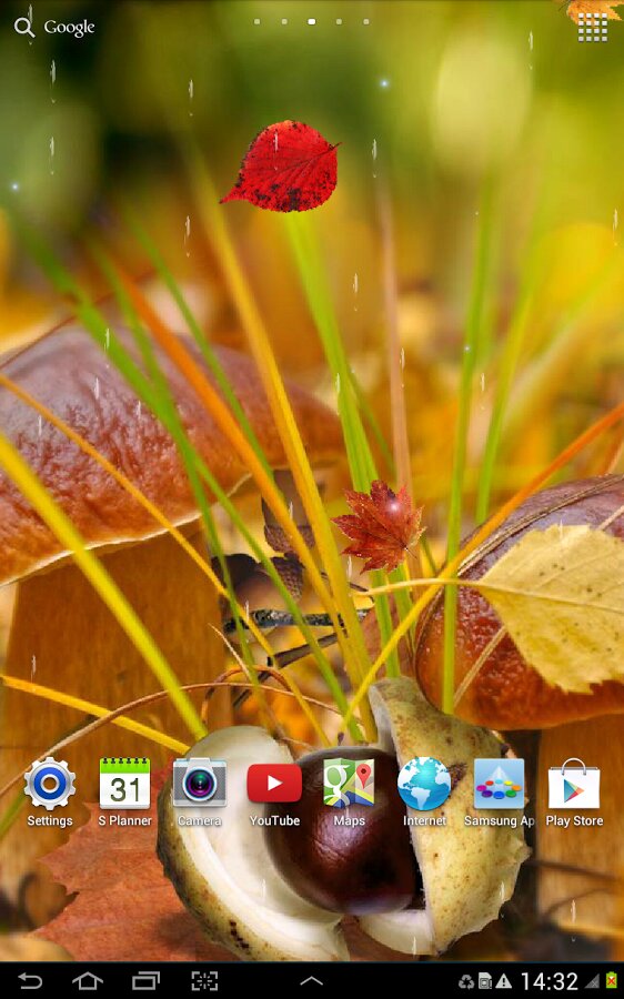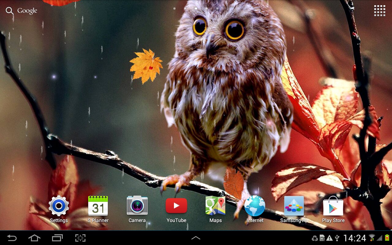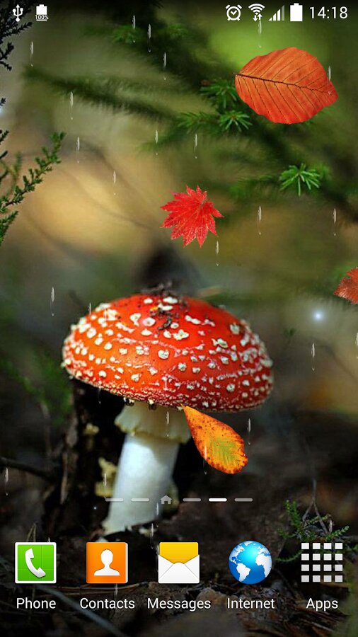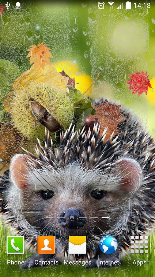 Все обои анимированы и реагируют на касание. Обои поддерживают 3D графику, выполнены в формате HD. Среди основных эффектов стоит выделить анимированный дождь и эффект от запотевшего стекла. Установите 18 различных картинок в формате HD с осенними листьями и различными животными (сова, волк, лисица, ежики). Для обоев также подойдут фото милых лесных ежиков. Приложение предлагает более 10 типов падающих листьев.