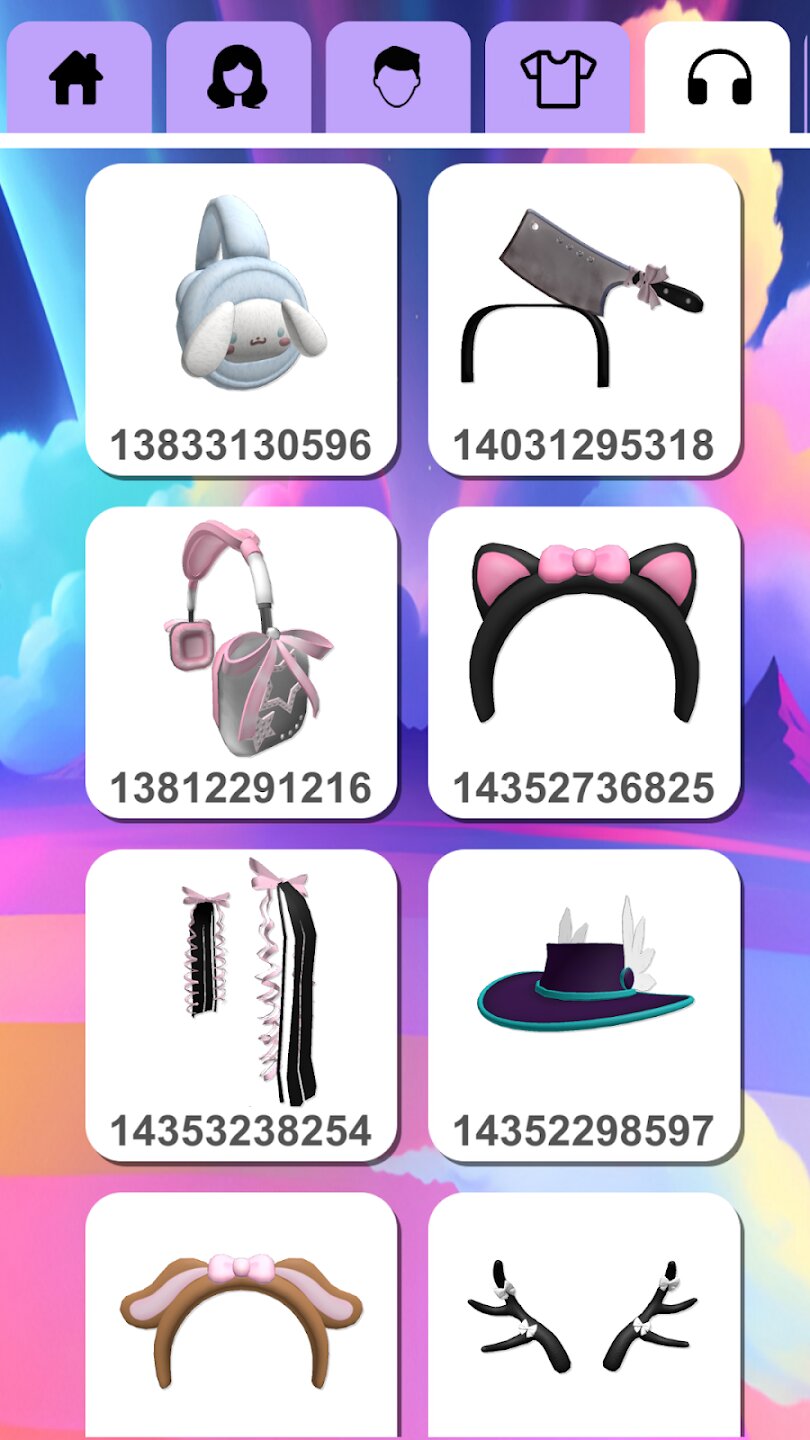 Больше не нужно перерывать форумы или соцсети в поисках работающих айди – все уже структурировано по категориям. Достаточно выбрать понравившийся предмет, скопировать код и вставить его в Roblox, чтобы мгновенно обновить внешний вид персонажа. Коллекция регулярно пополняется, включая как классические, так и эксклюзивные варианты стилей для мальчиков и девочек.