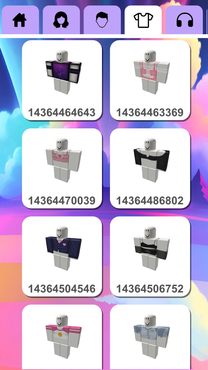 Коды и скины для Roblox – приложение с бесплатными айди одежды и стилями для персонажей.
